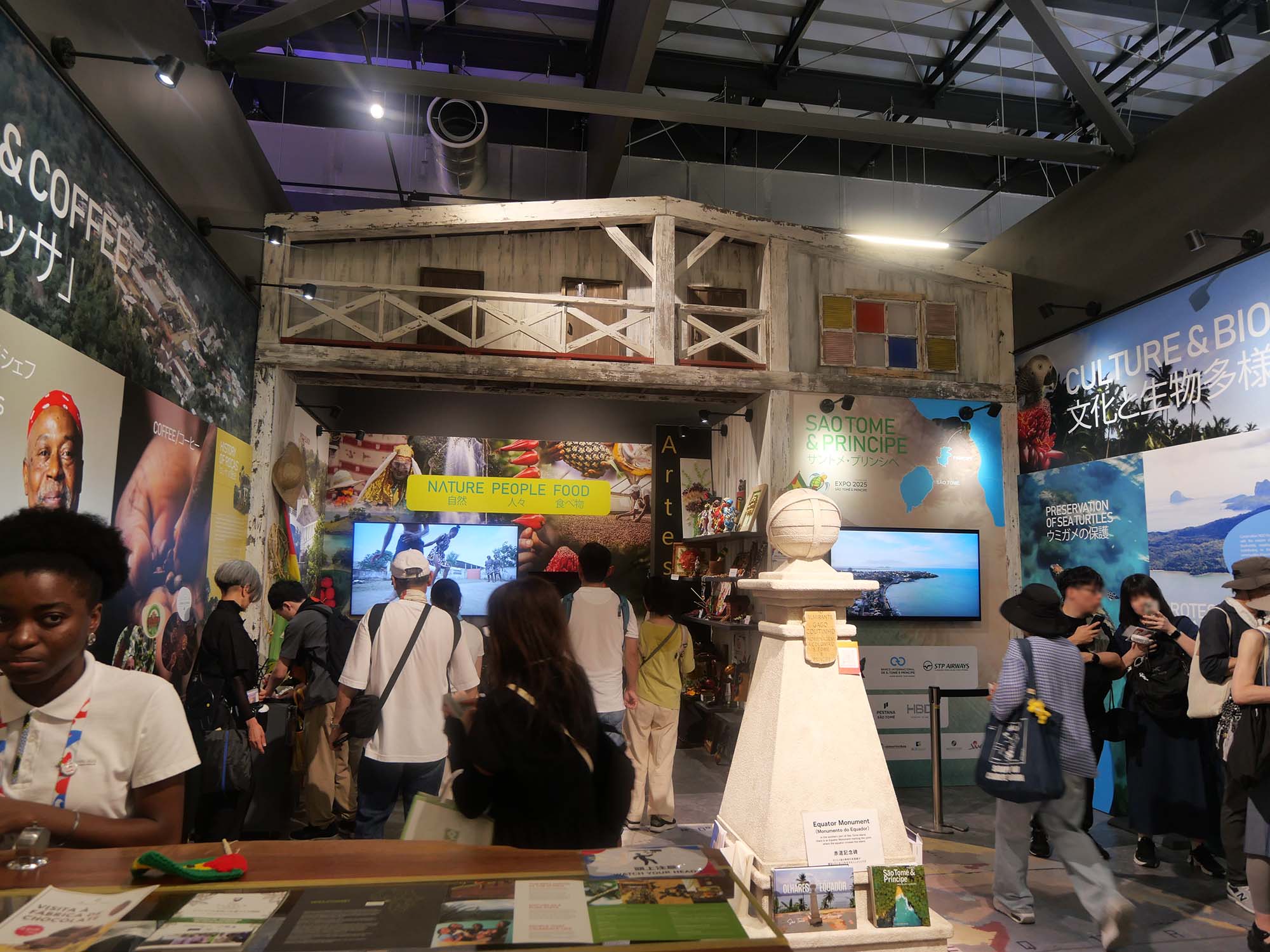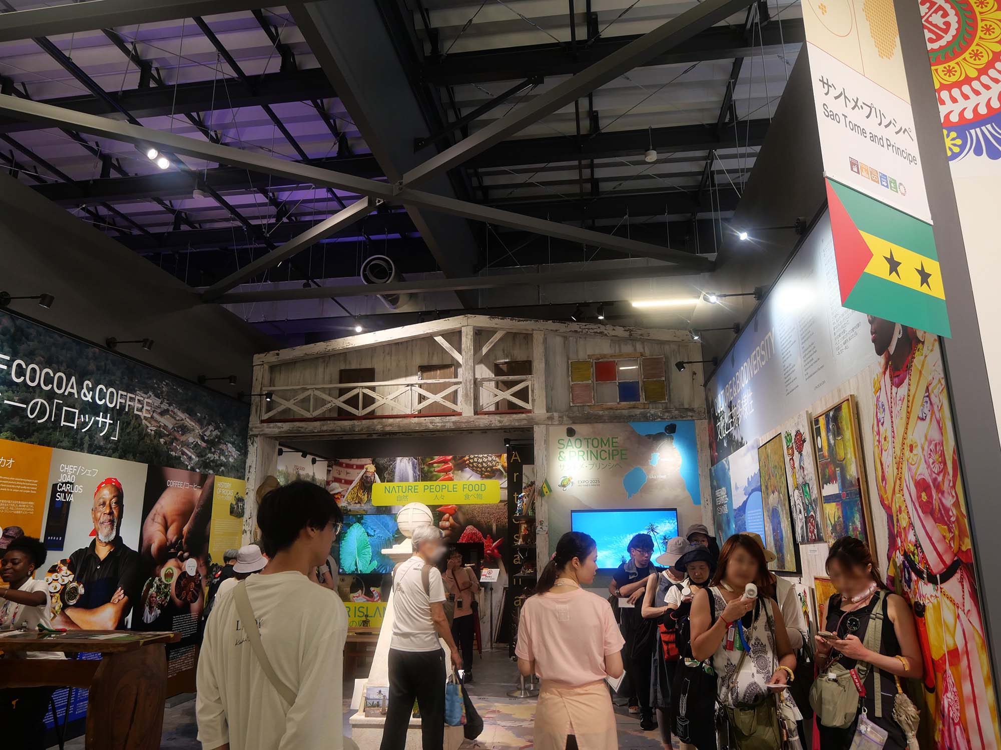 サントメ・プリンシペ民主共和国館は、西アフリカの島国である同国の自然環境と文化、持続可能な社会への取り組みを紹介する展示が中心のパビリオンです。カカオの生産地として知られる国であり、館内では農業や森林、海洋資源とともに、人々の暮らしや伝統文化、手工芸などが写真や映像、パネル展示を通して紹介されていました。