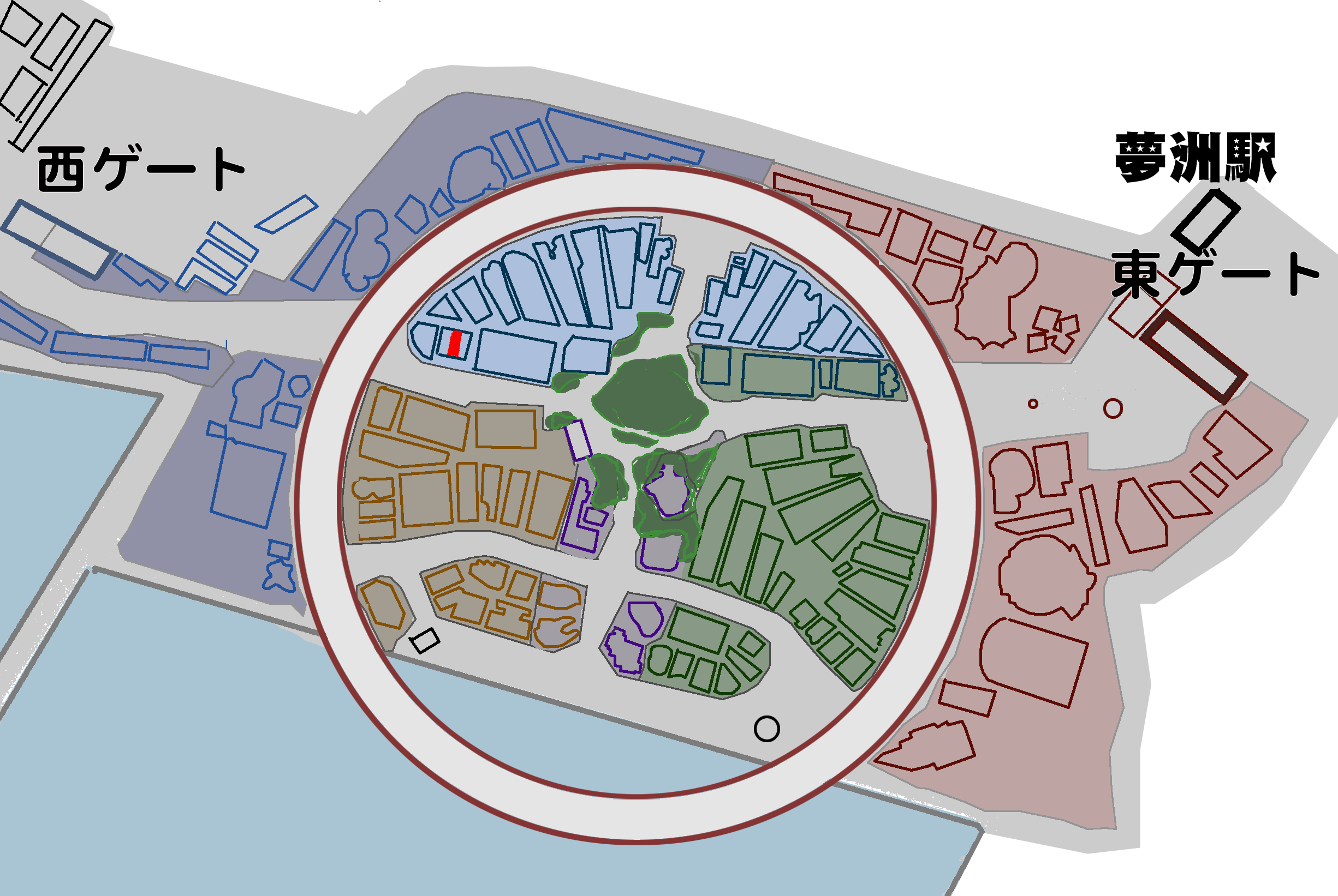 西ゲートから大屋根リングを通り左手゛ルビア館をするぎると共同館があり、その真ん中がこの国。