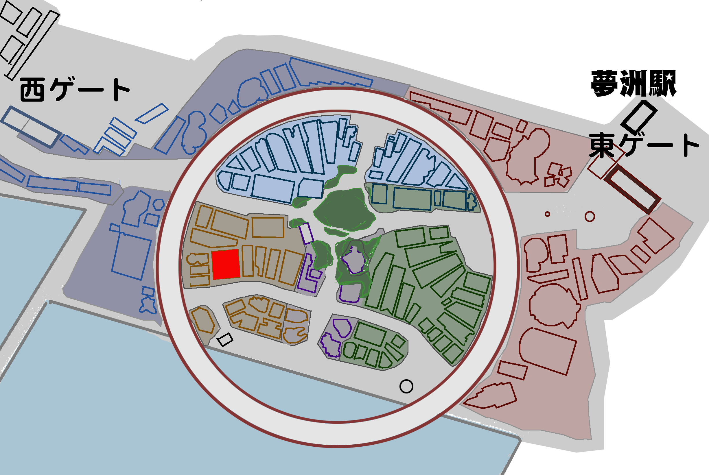 西ゲートから入り、大屋根リングを右折、オランダ館を左折すると隣にコモンズD館がある。