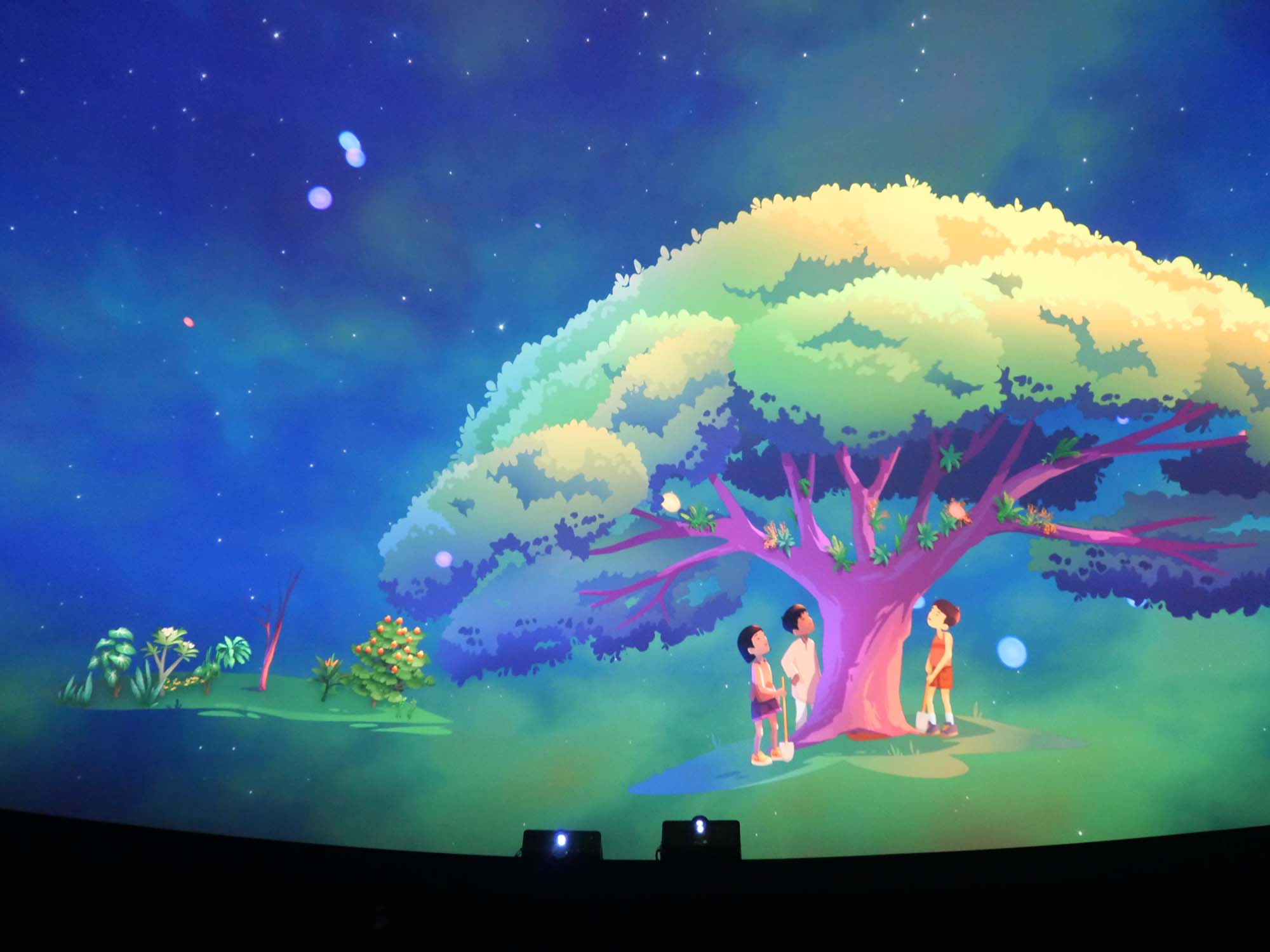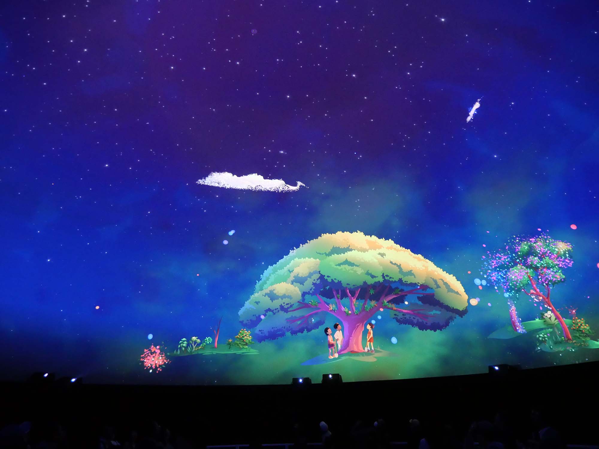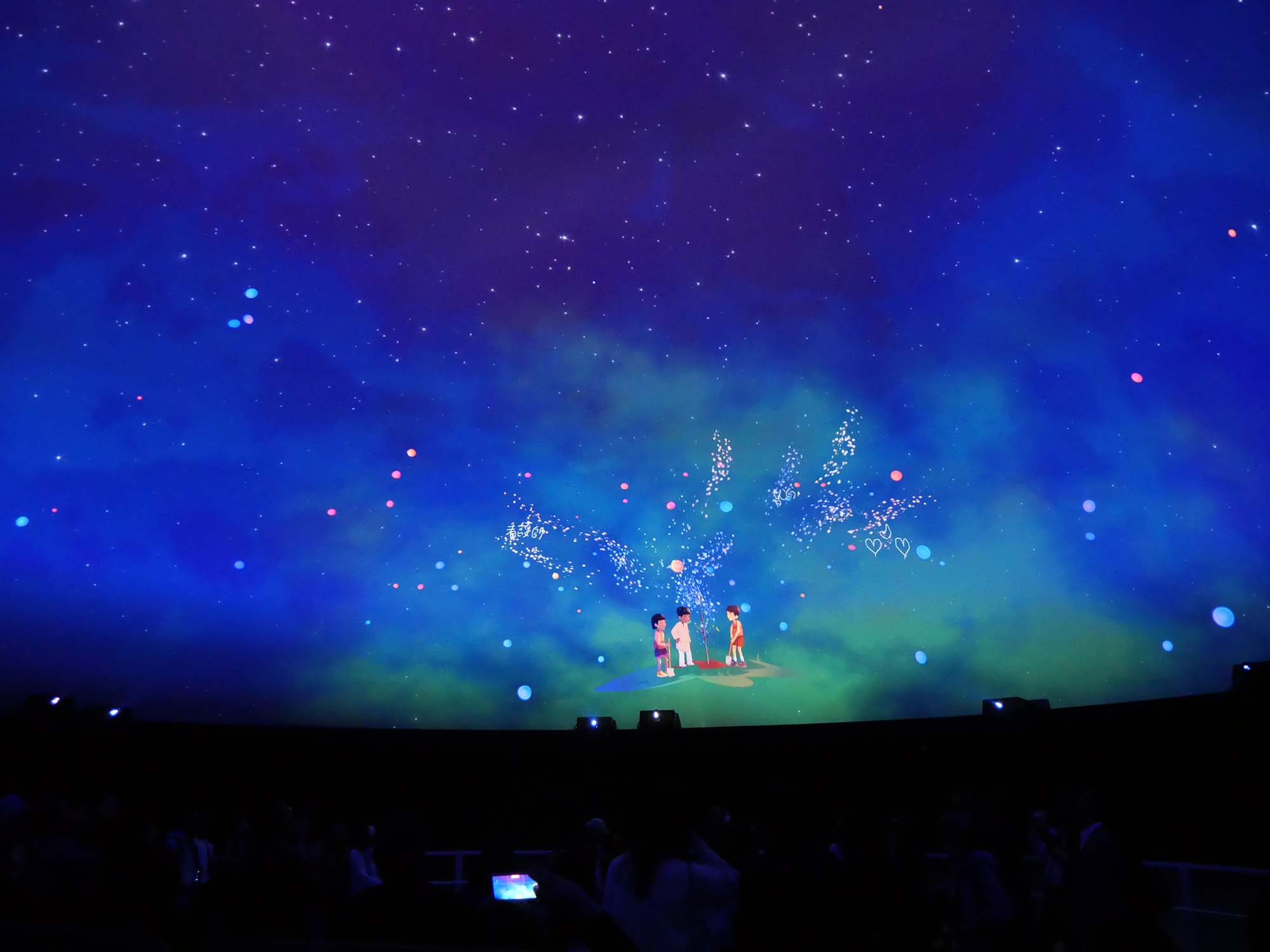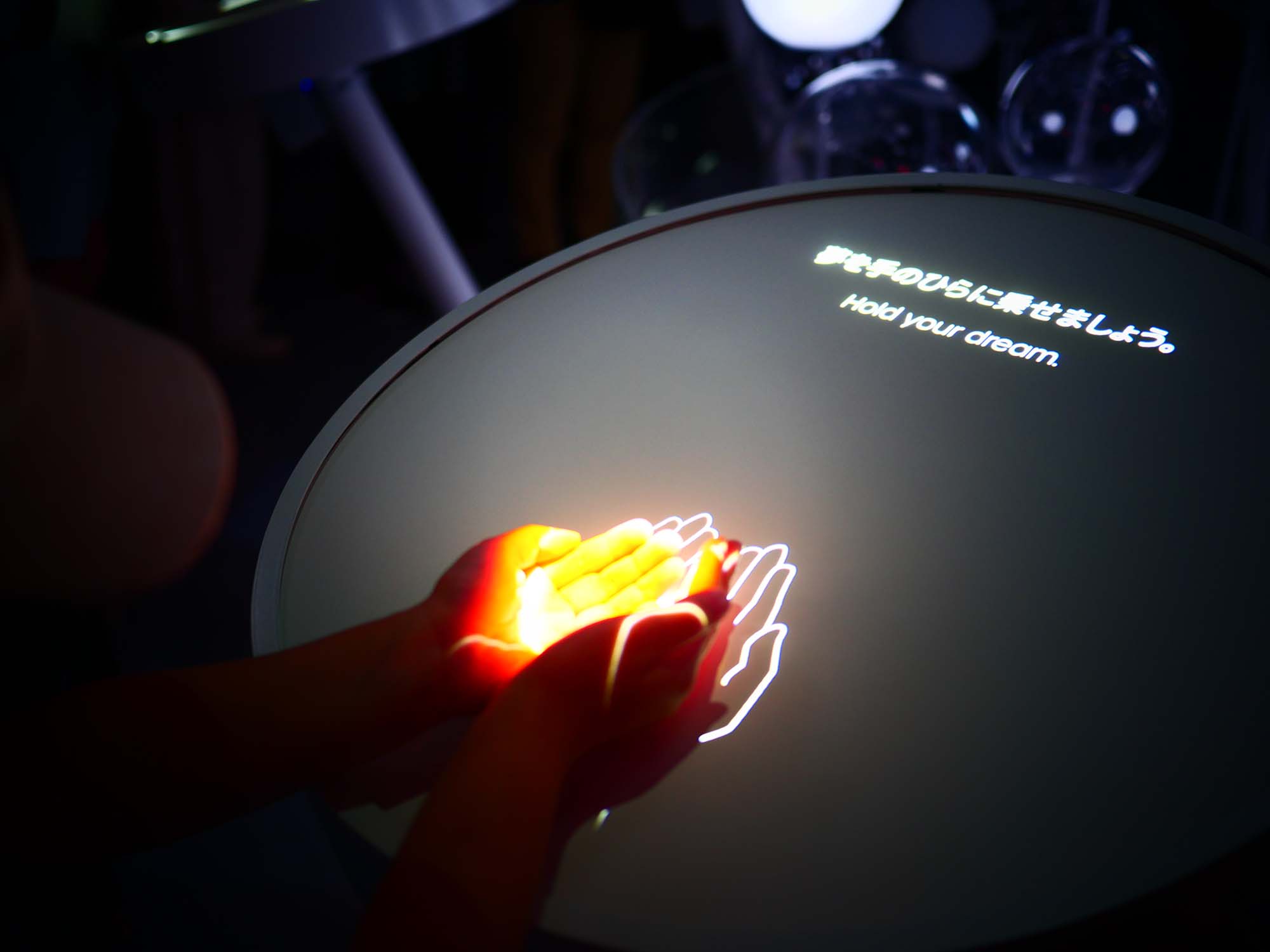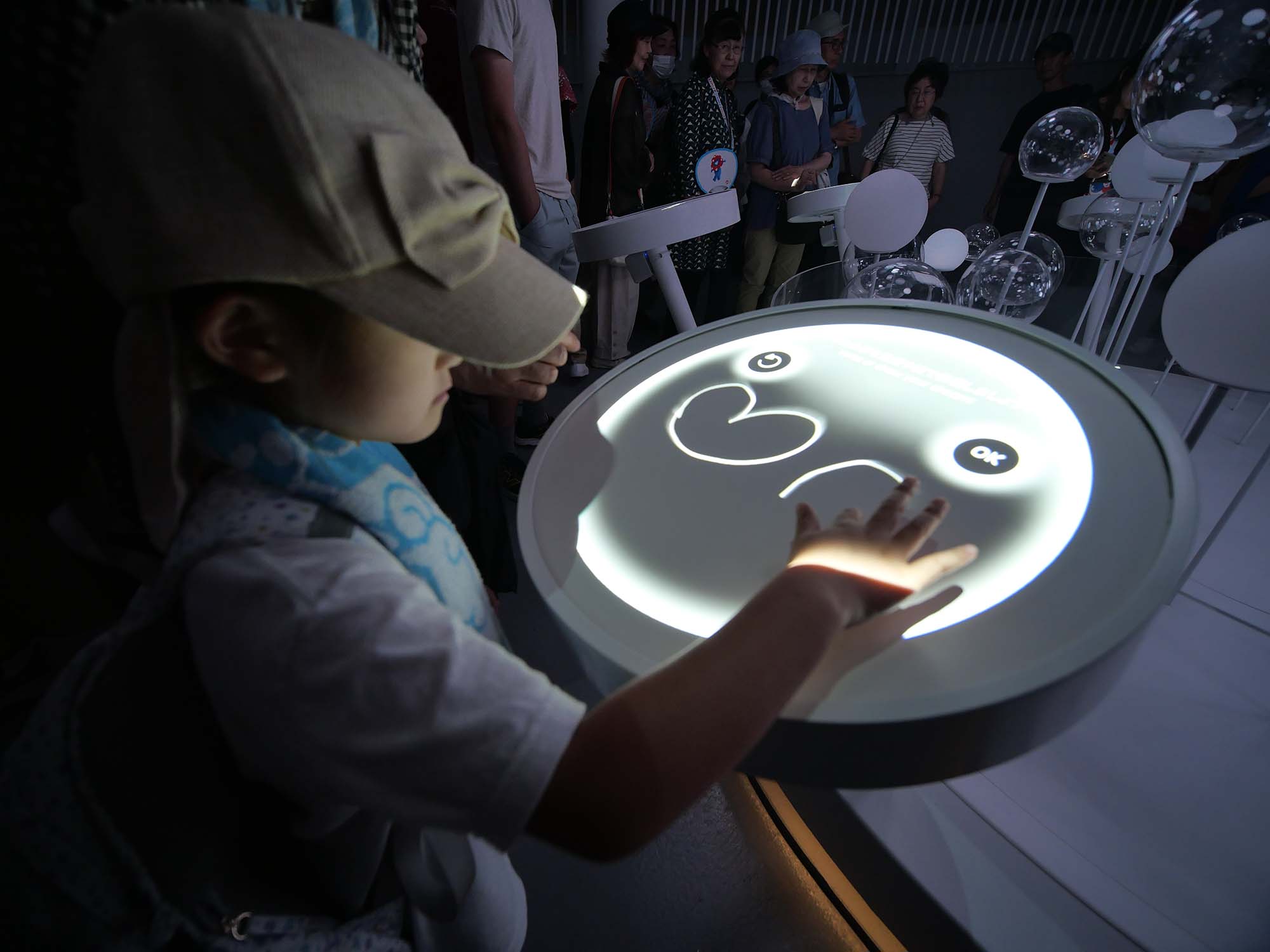 1階で来場者が書いた「夢」や「想い」が、映像の中に自然に組み込まれて現れる仕組みとなっており、小さな子どもだけでなく、大人も思わず見入ってしまう内容でした。
