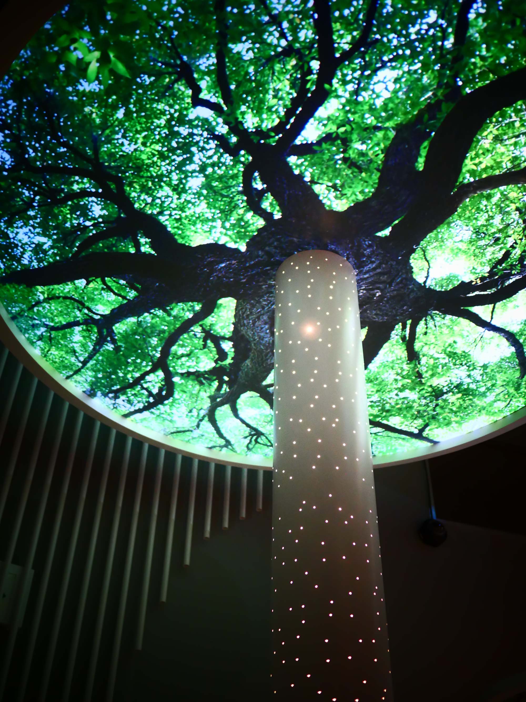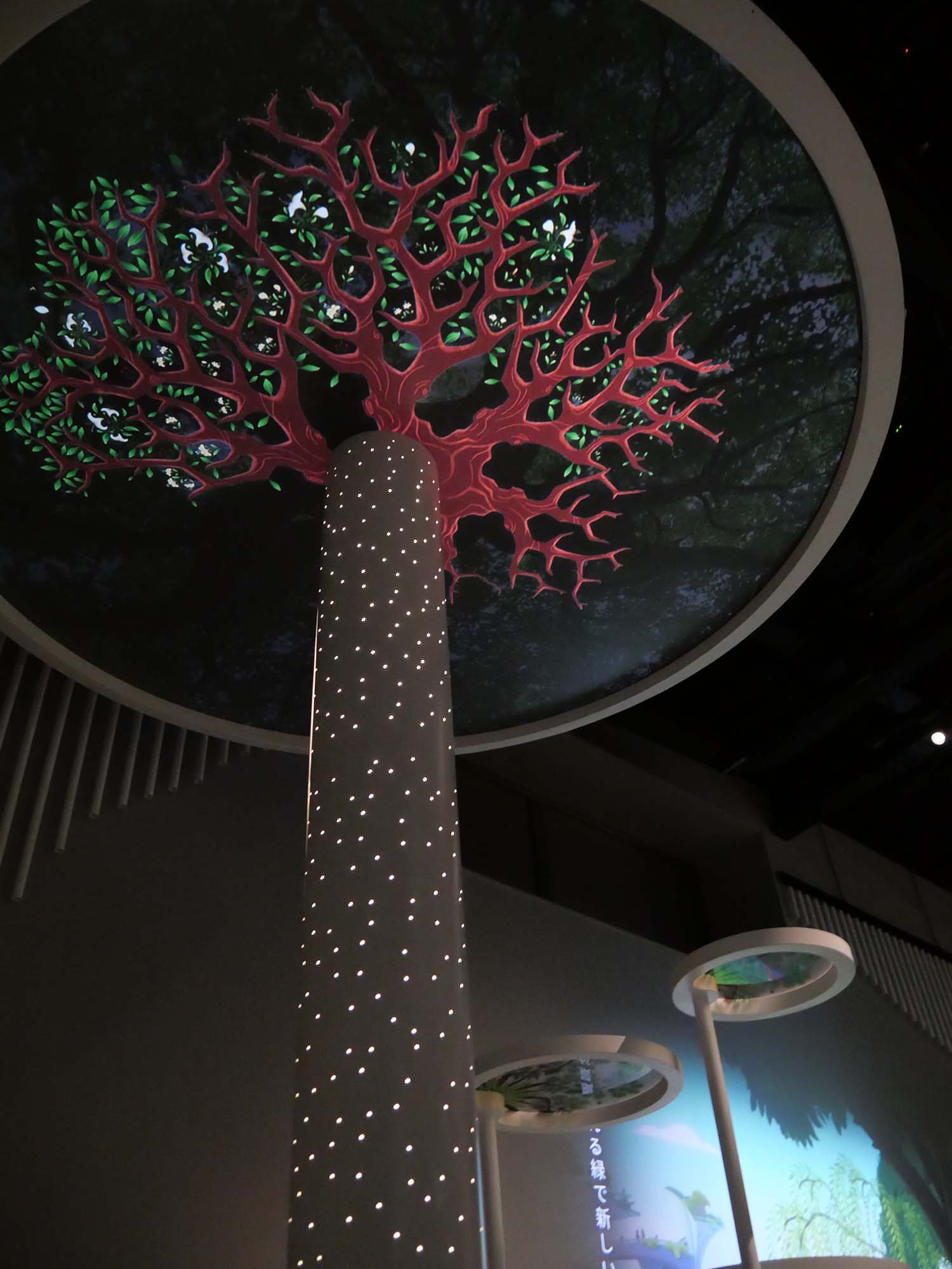 1階展示で、円柱とその天井に映し出される樹木の映像は、仕掛け自体は決して複雑ではありません。しかし、その映像が語るのが、シンガポールを象徴する一本の木「テンブス(Tembusu)」の物語であったことに、深く心を打たれました。