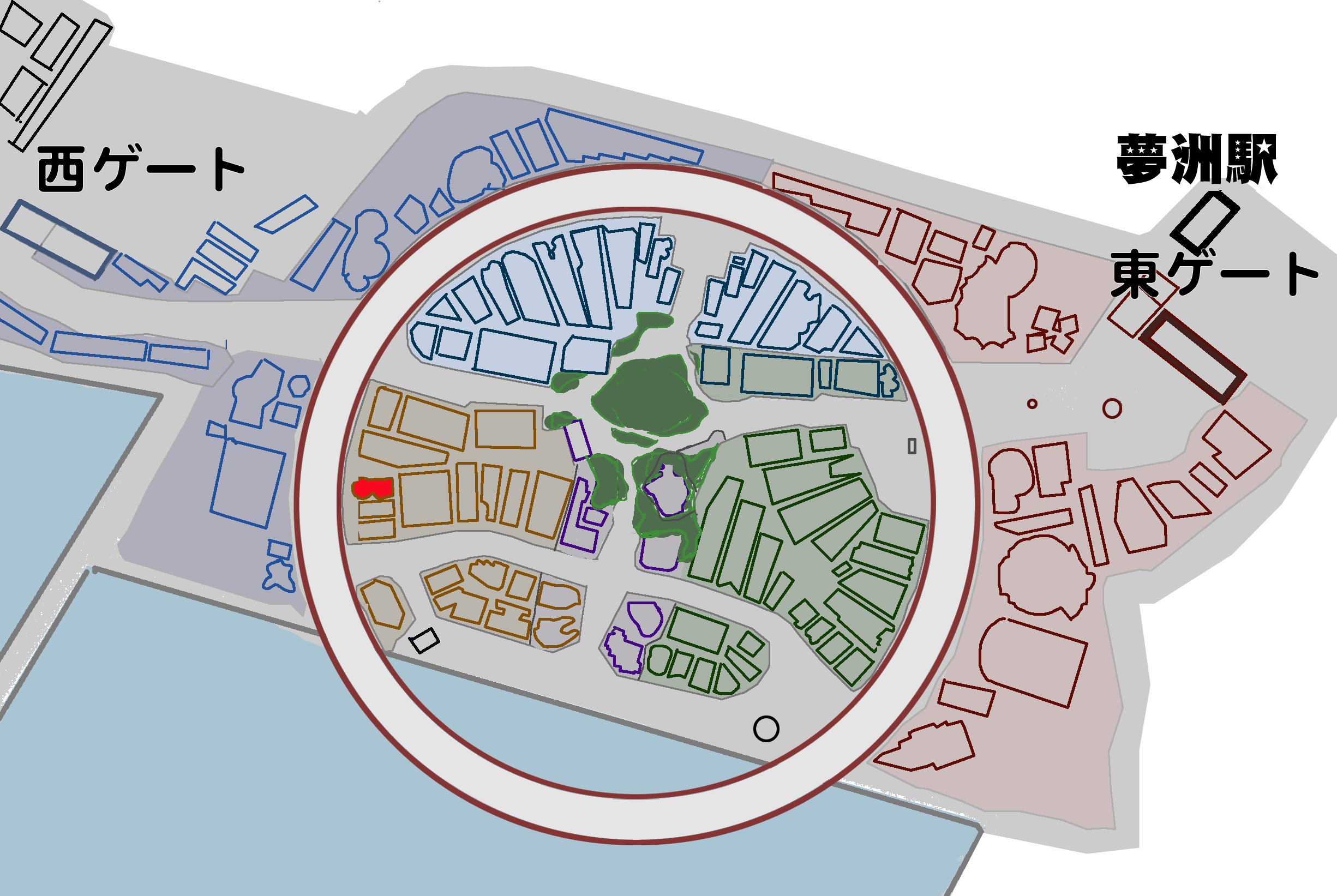 西ゲートから大屋根リング通り、ベルギー前を右に、イタリア館の隣。