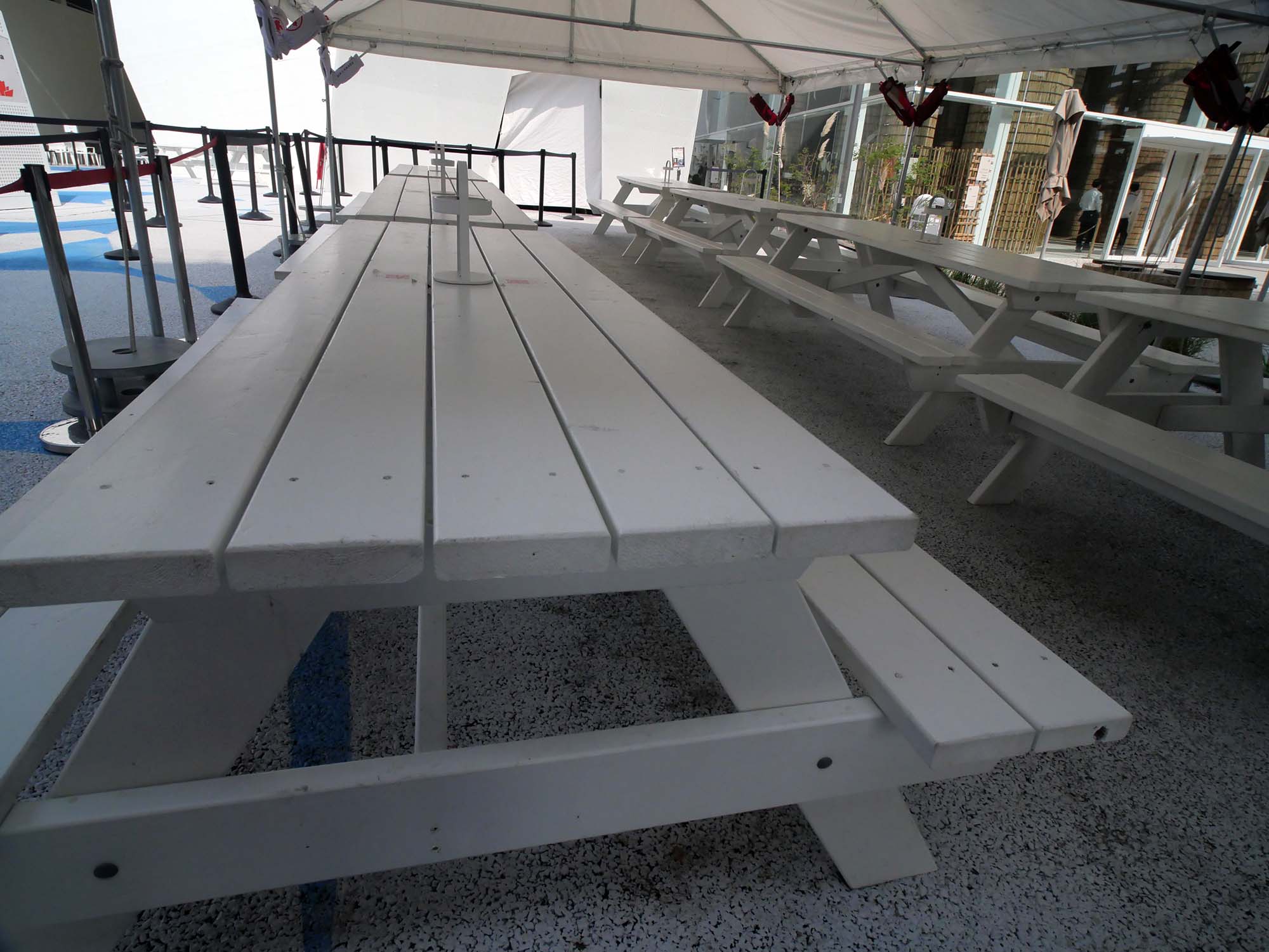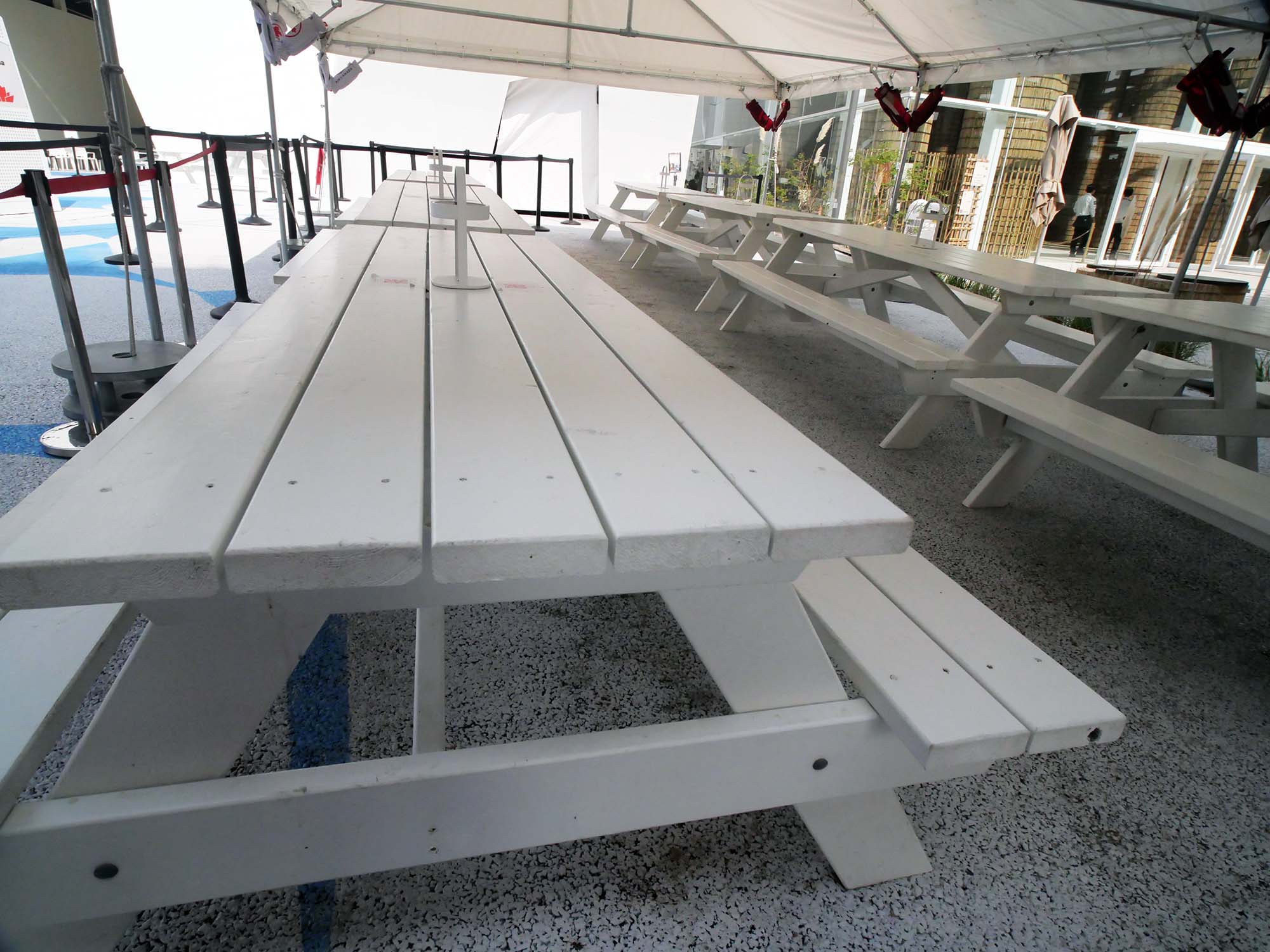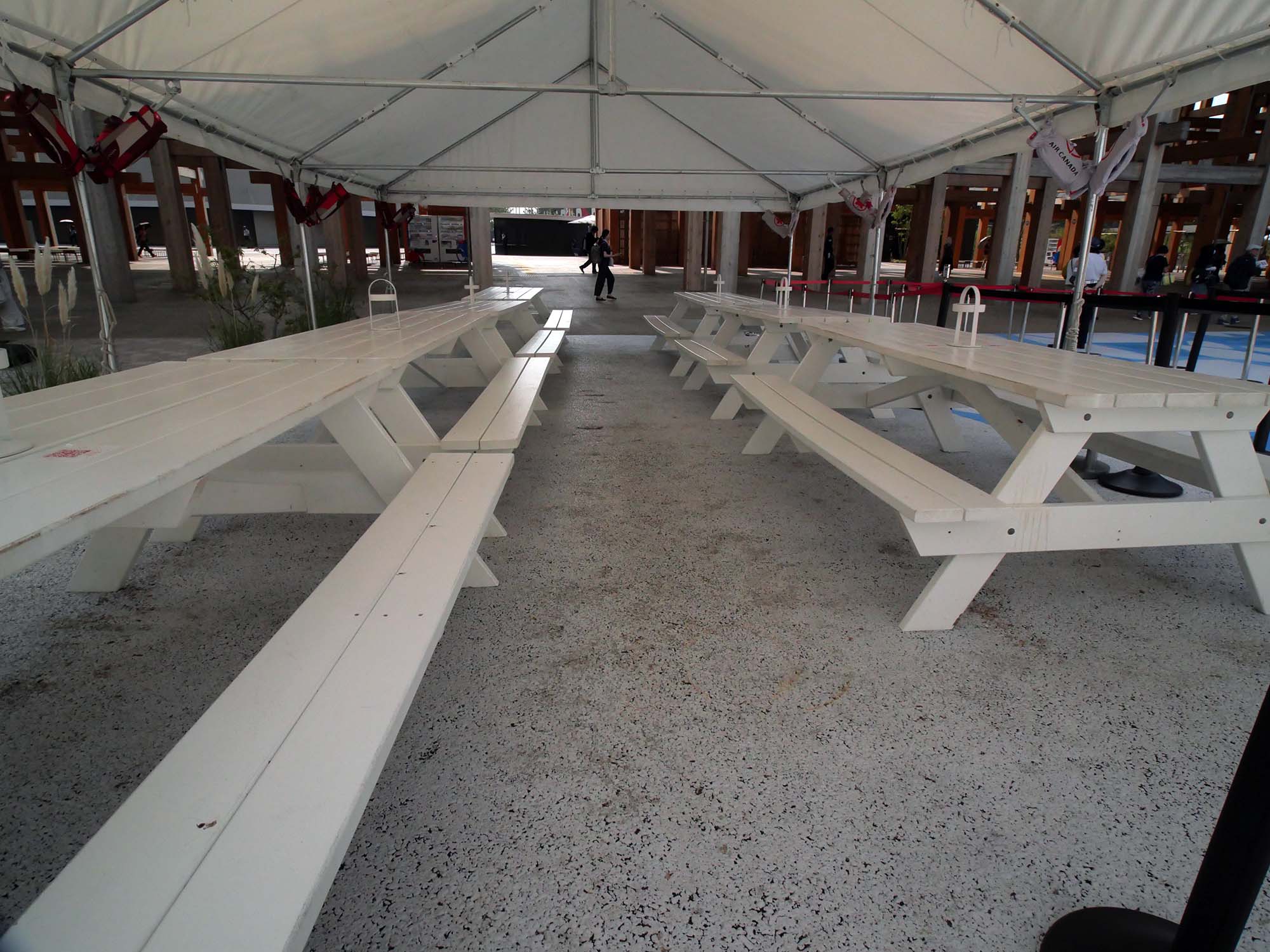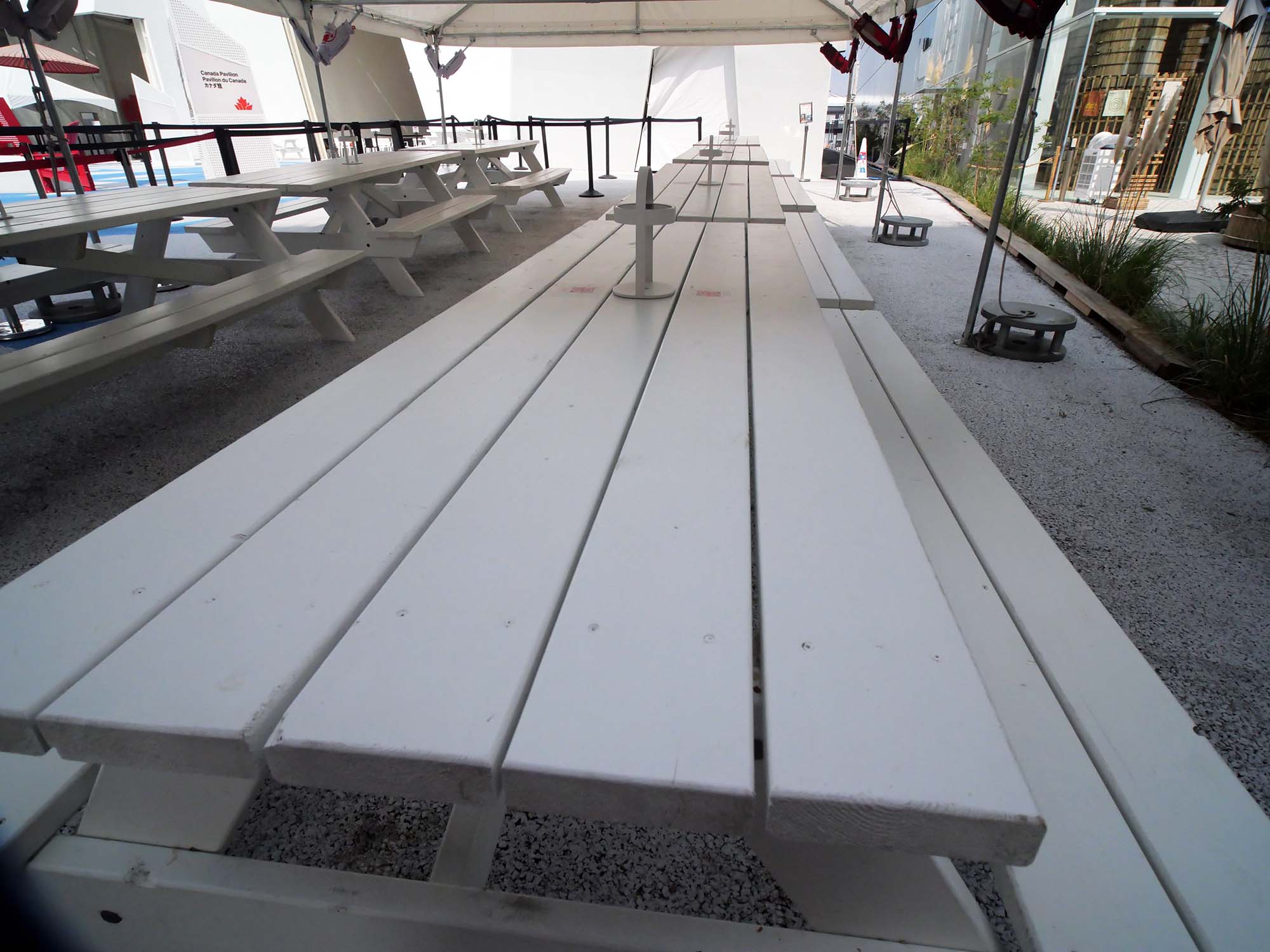 しかし今回の万博で木材が使われている場所は、ひろばのベンチ程度に限られており、1970年万博で木造建築を前面に打ち出していたカナダの姿を知る者としては、少し残念に感じました。