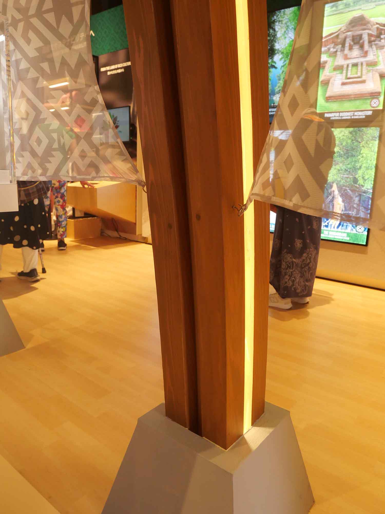 このパビリオンの設計・展示計画・施工は日本のフジヤが担当しており、伝統文化の温もりと革新的なデザインを融合させた空間を実現しています。木のぬくもりに包まれた展示空間の中で、来場者は人々の暮らし、自然、技術、そして未来への希望が有機的に結びつく「命をつなぐ国」バングラデシュの物語を感じ取ることができます。