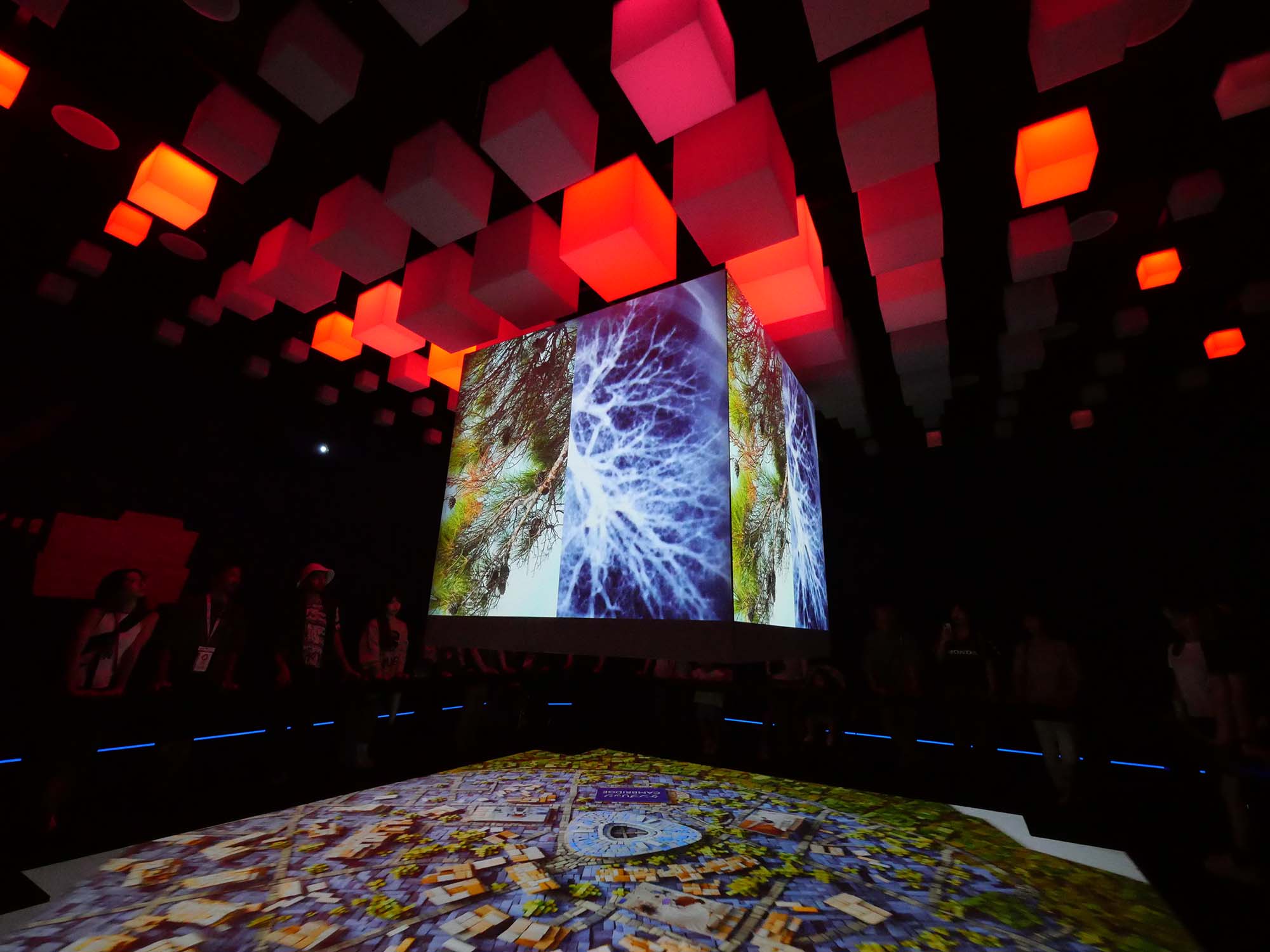 デジタル案内板と正面パビリオン