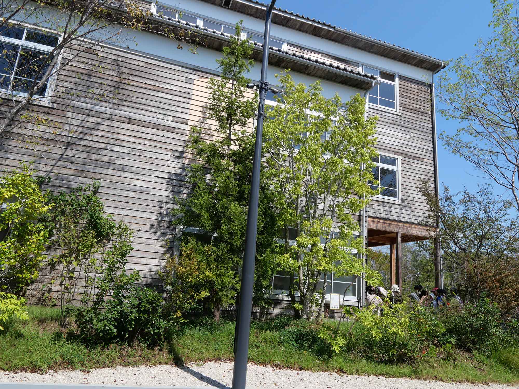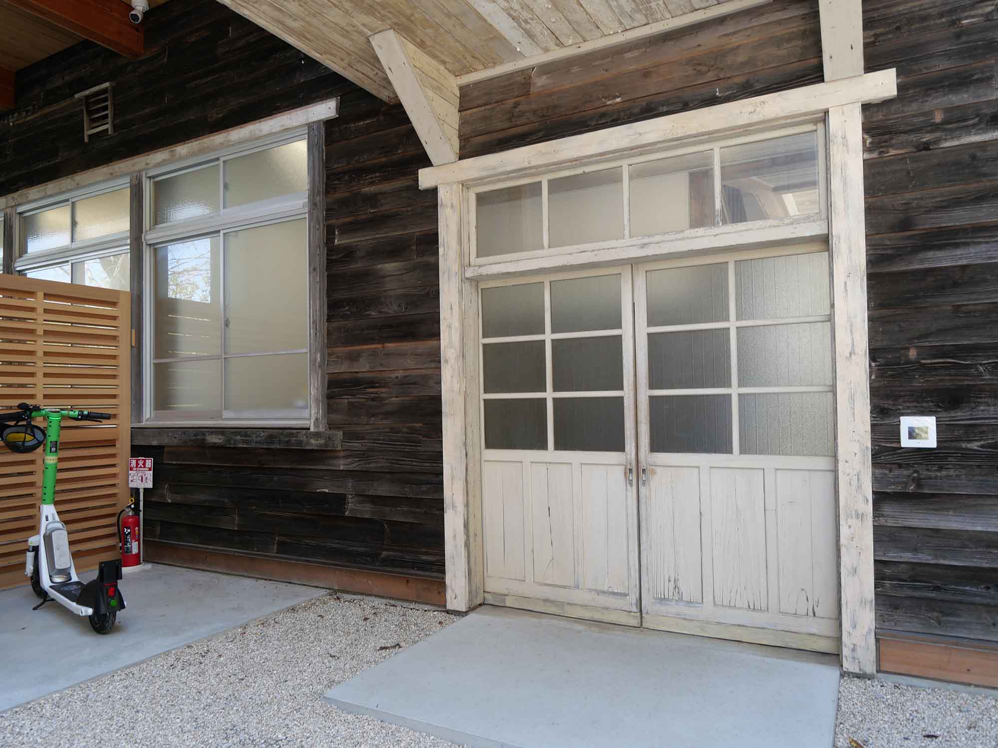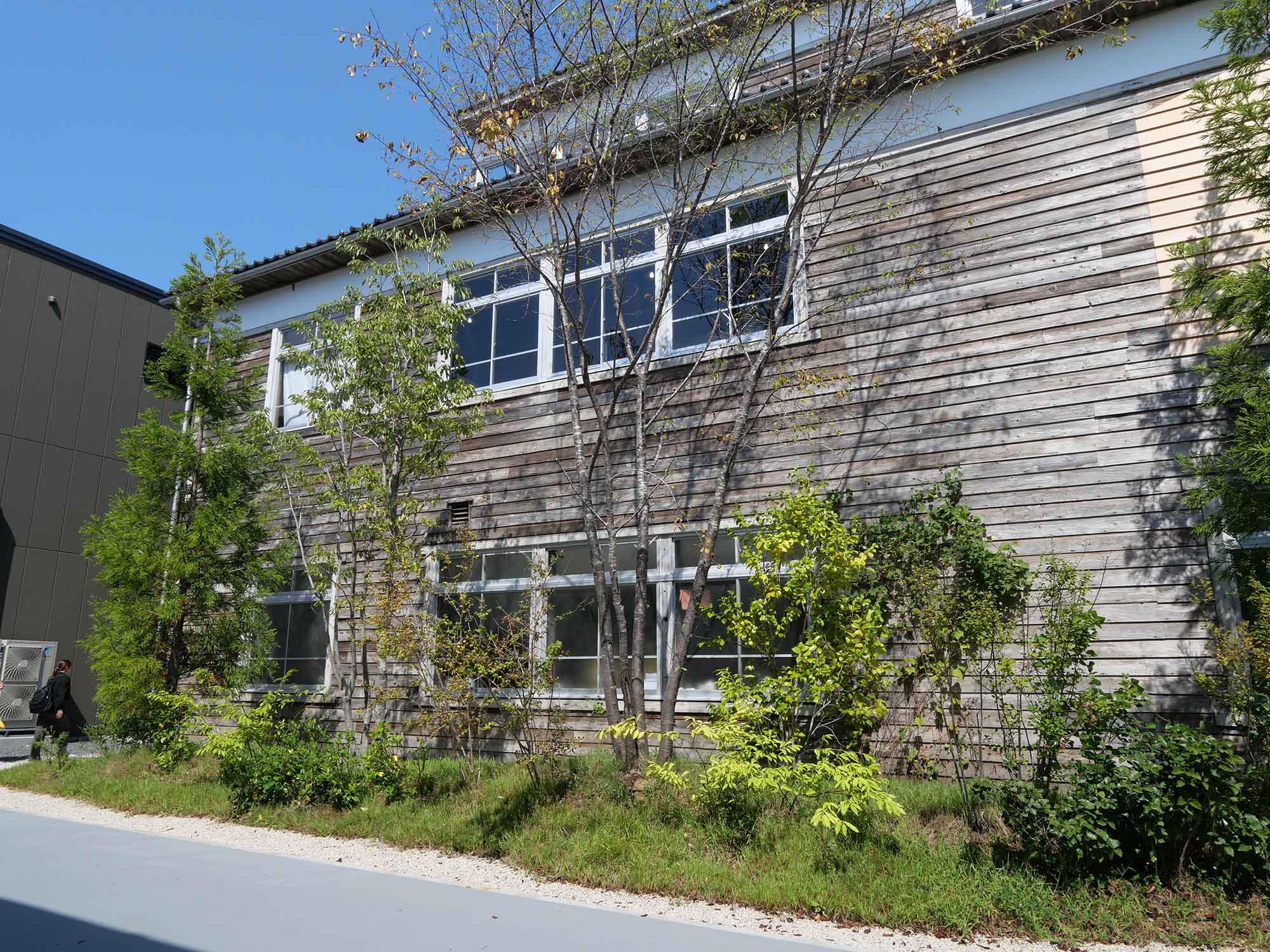 京都府福知山市立細見小学校中出分校(1930年)という2つの木造校舎を解体・再構成したものです。3棟構成で、
