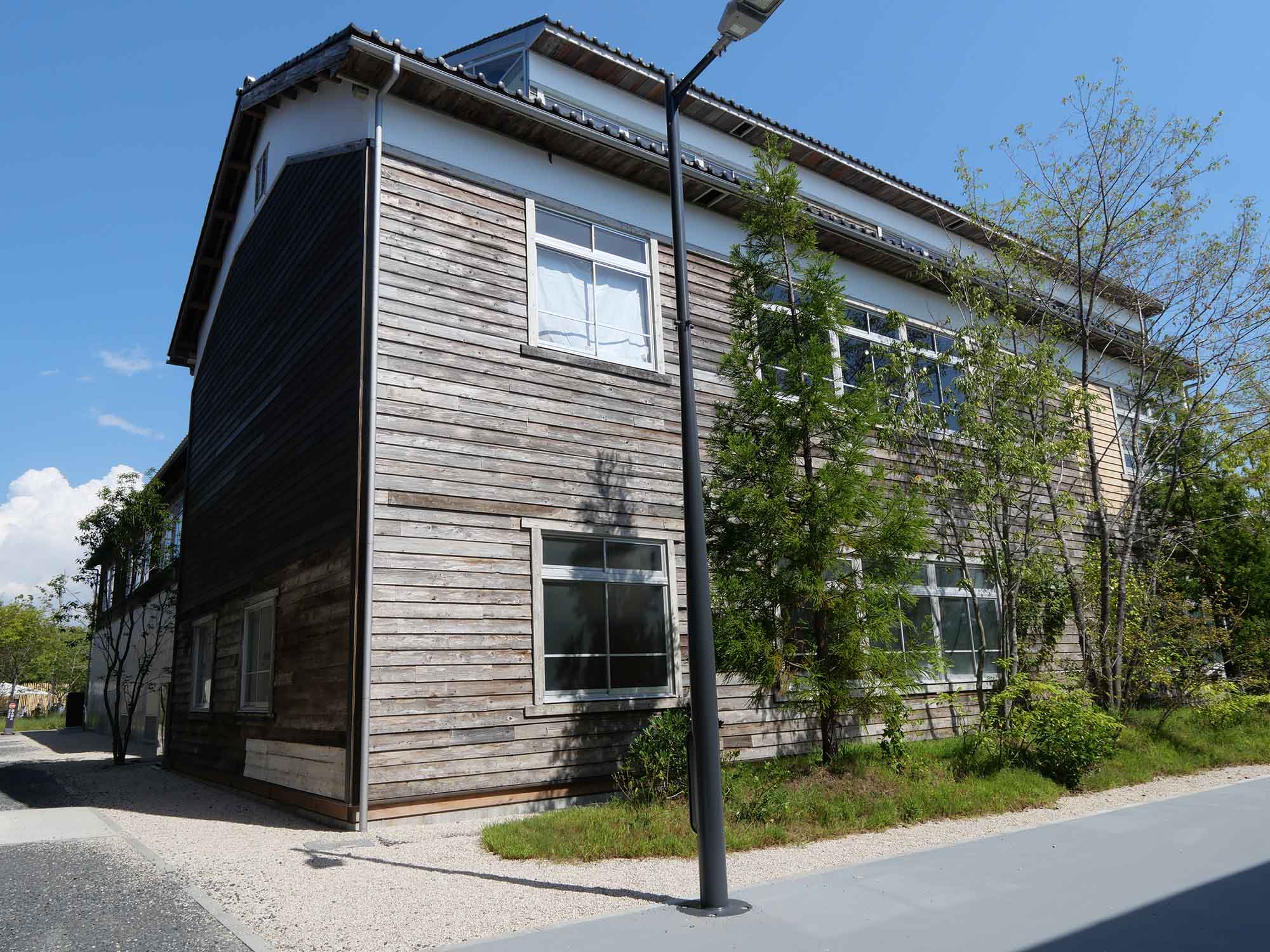 古材とコンクリート・ガラスを重ねた“サーキュラー建築”として注目されています。