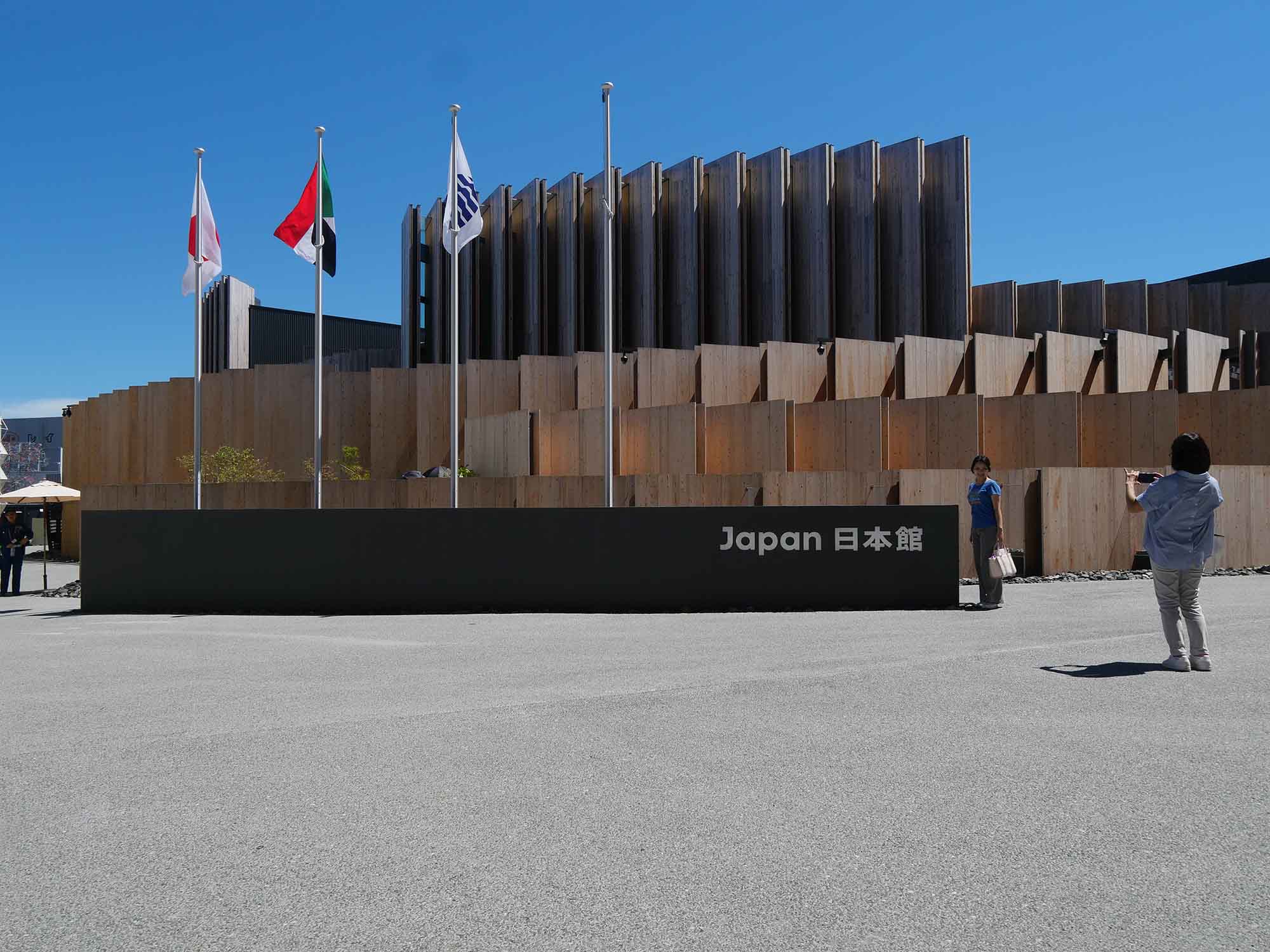 日本館では、国産スギ100%の間伐材によるCLT(直交集成板)パネルを560枚、約1,600m³使用。>CLT2枚で鉄骨を挟み1ユニットとし、円形配置し、循環の象徴である円形建築を表現しています。CLTは会期後に再利用される予定です。