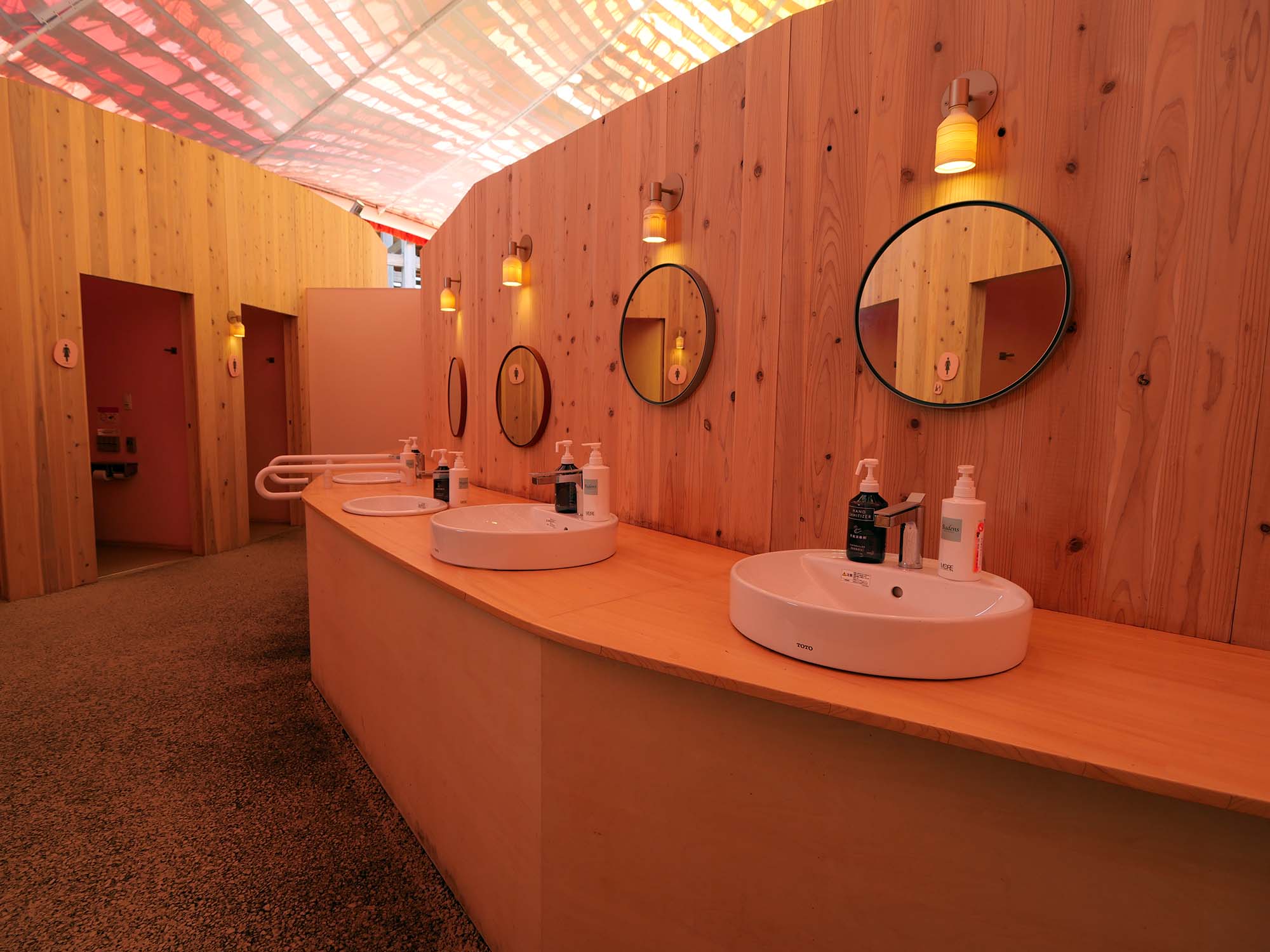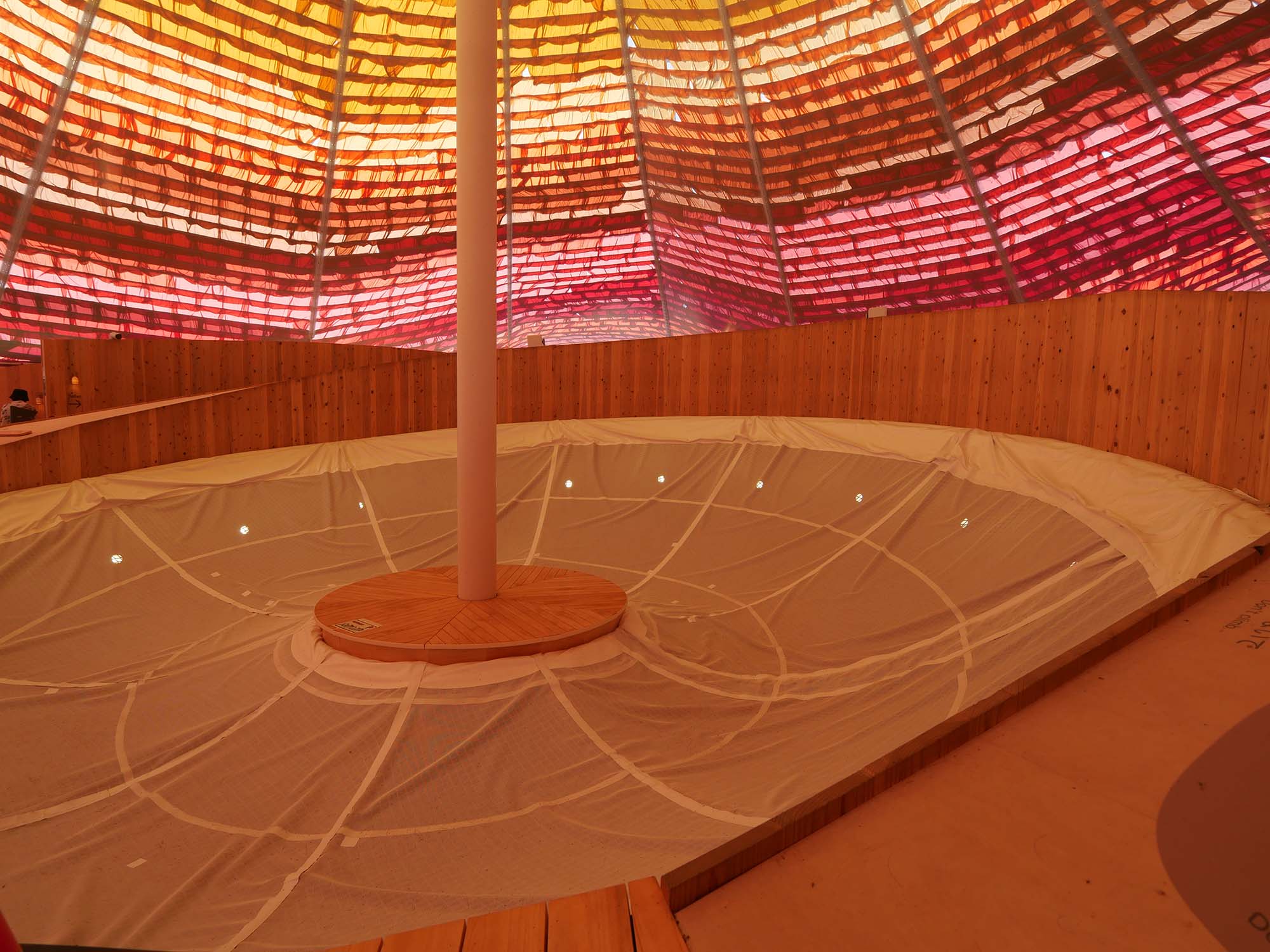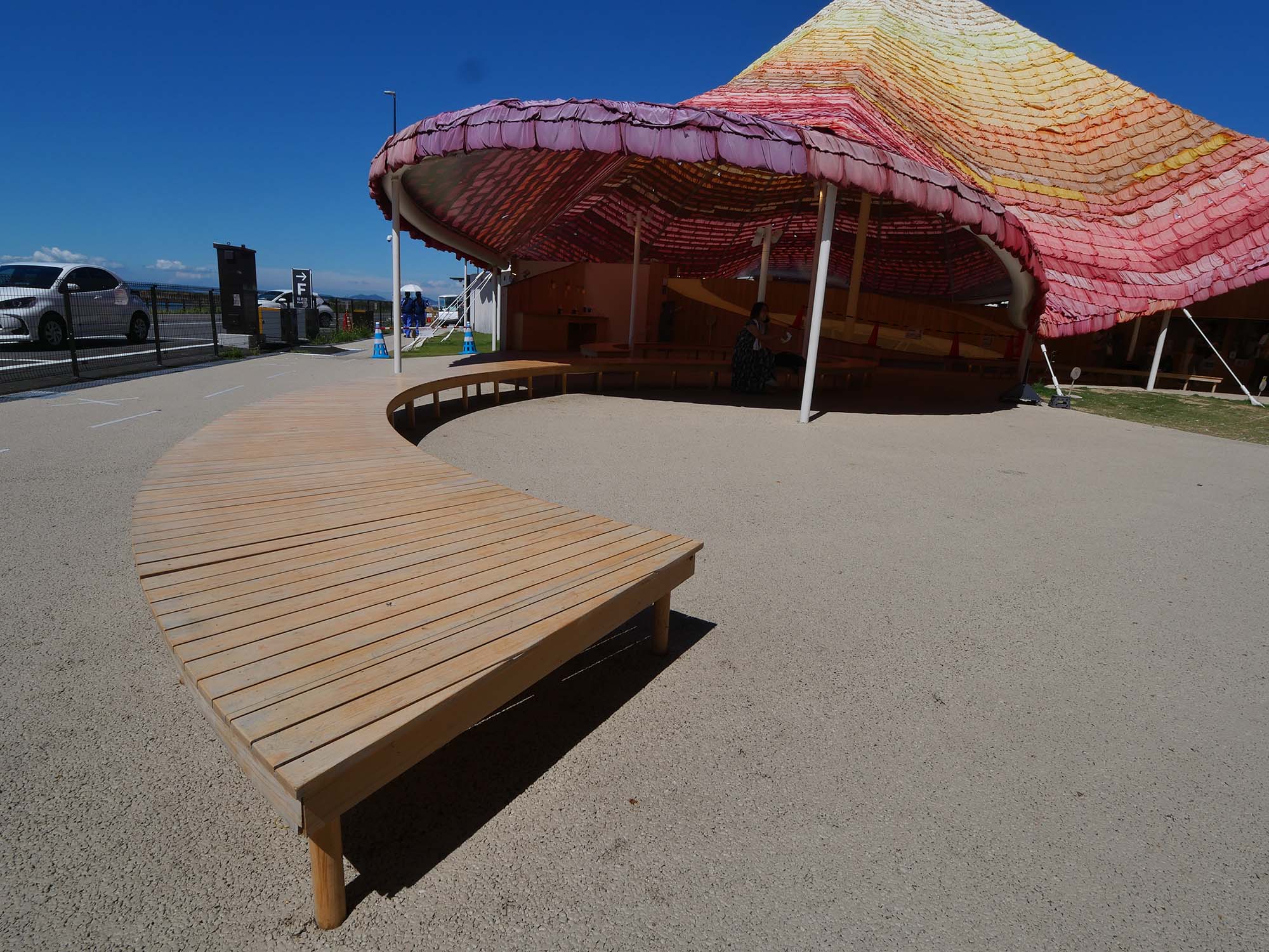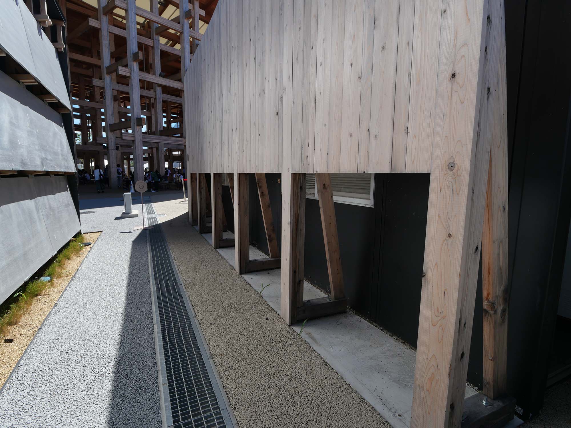 国内のパビリオンや施設などで木材を構造や内外装などに多用しているもの