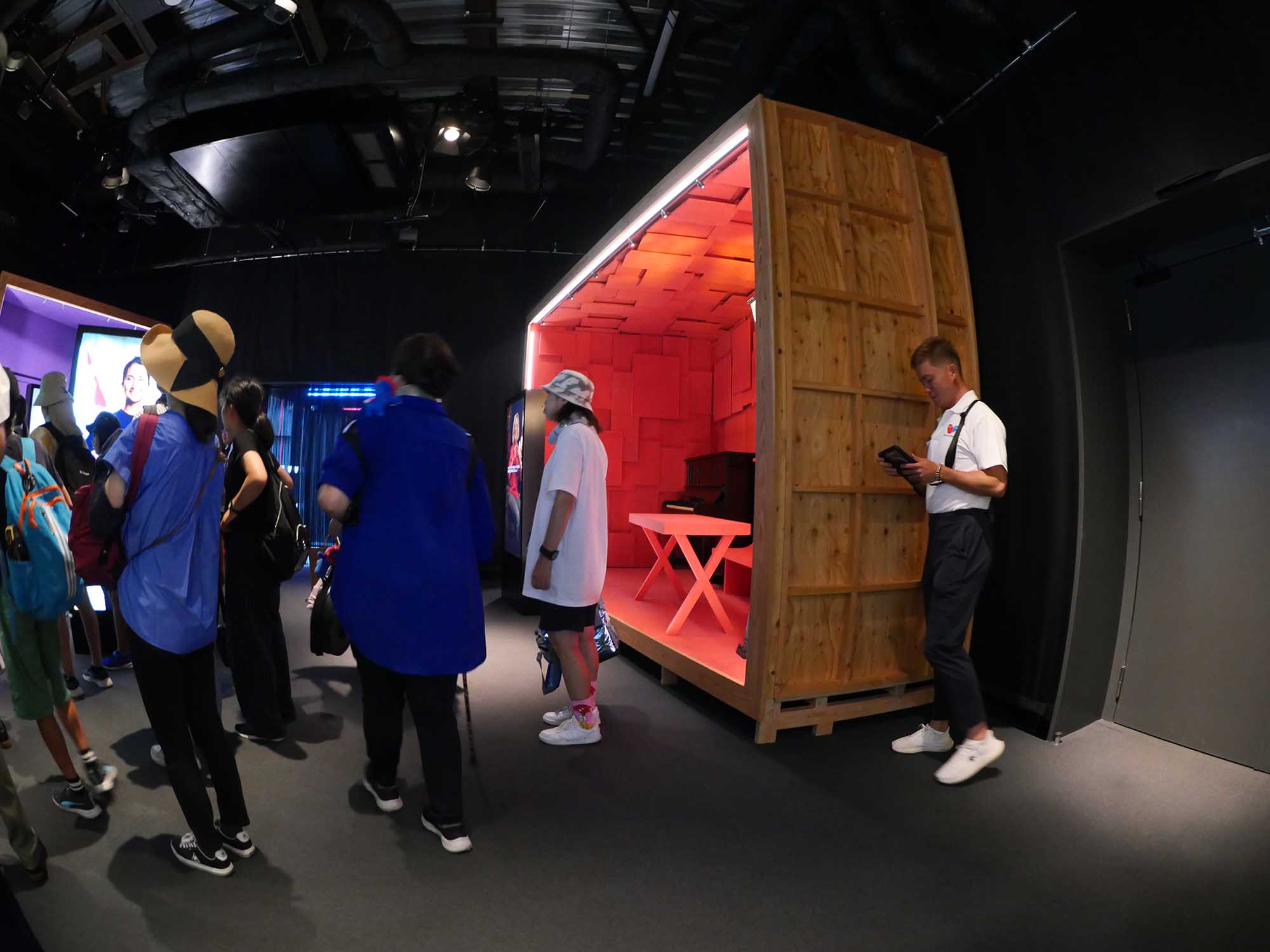 館内の動線は、13のユニットの間に設けられた路地や庭園を巡る形で構成されており、日本的な「路地」や「坪庭」の感覚が随所に取り入れられています。展示は3つの「幕」で構成され、舞台美術は「jangled nerves」が手がけています。第1幕では、ルクセンブルクの住民の暮らしや多様性に触れることができる空間が広がり、等身大の映像やパネルを通して来館者と対話するような展示が用意されています。第2幕では、未来技術とサステナビリティをテーマに、インタラクティブなゲームやタッチディスプレイを通じて環境保護や先端産業(宇宙開発や医療技術など)への理解を深める体験ができます。中でも、来館者がボタンを押して反応を楽しむ球体展示など、感覚的な参加型コンテンツが特徴的です。