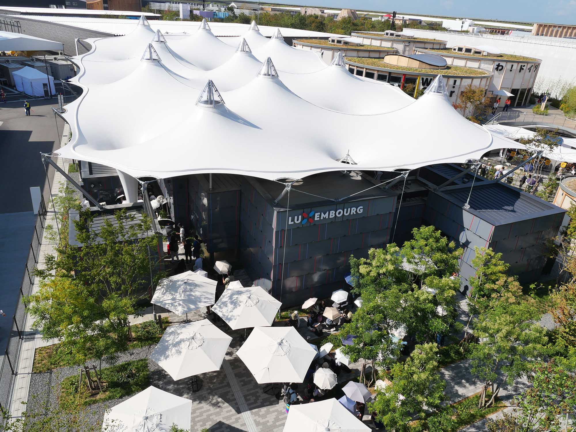 このように、ルクセンブルクパビリオンは、最新の建築技術とサステナブルな思想を融合させた構成のもと、文化・技術・自然を多角的に紹介する場となっています。建築そのものが“体験の器”として機能し、再利用可能なモジュール型の構造、膜屋根の活用、日本と欧州のコラボレーションなど、未来の建築のあり方を示す先進的な事例となっています。
