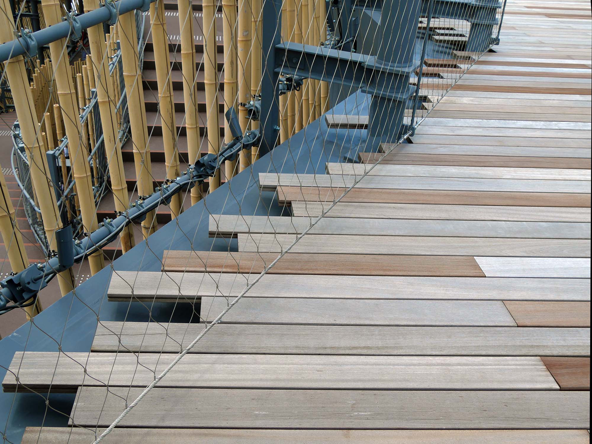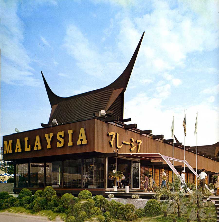 外壁は立体織構造の竹、館内の床材や屋外デッキにはセランガンバツ、壁面にはマレーシアの赤土をイメージした「タナメラ」色が使われ、同国の素材と伝統色彩を表現しています。
