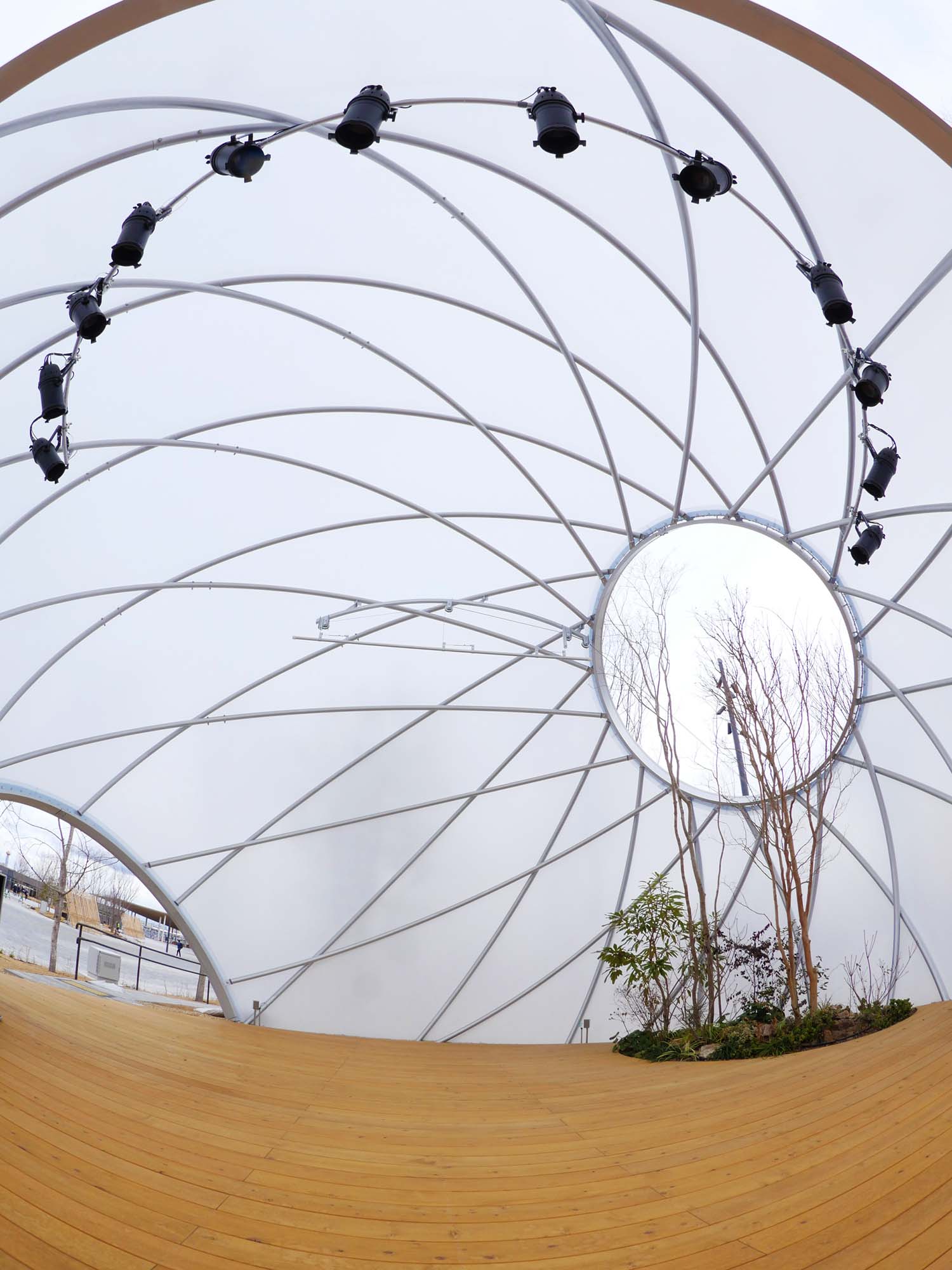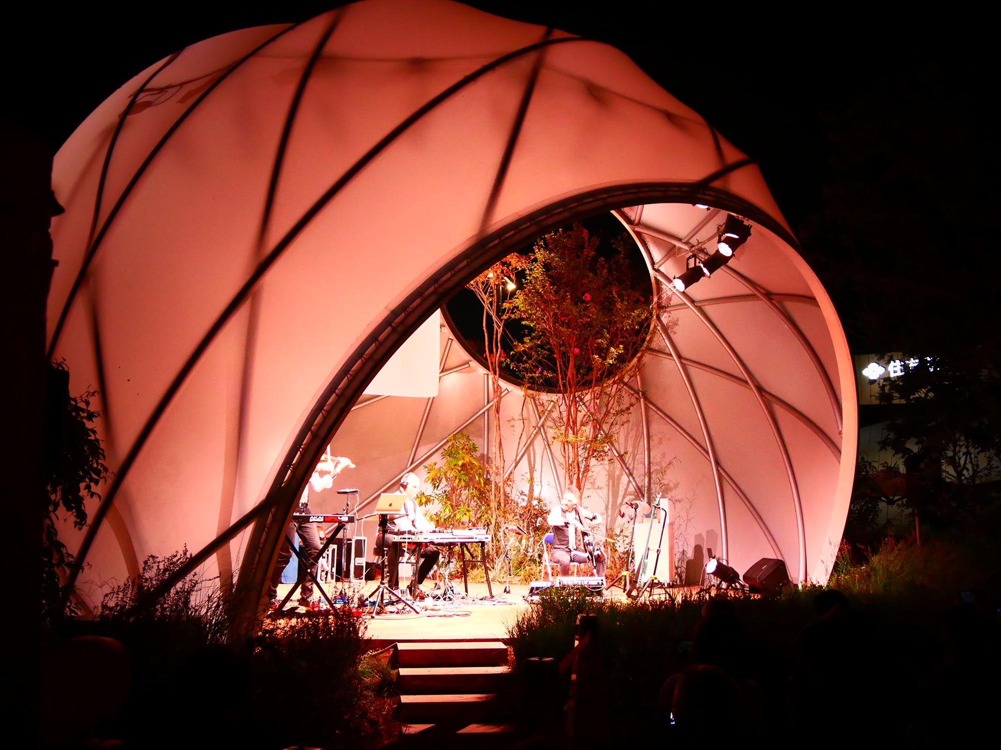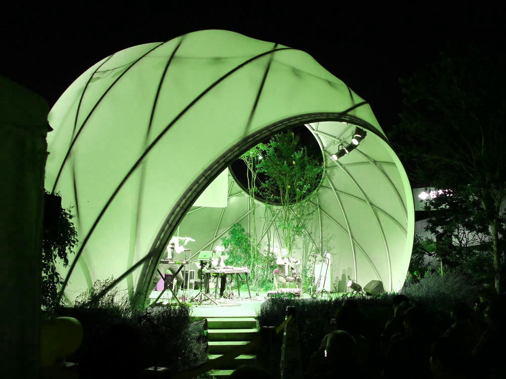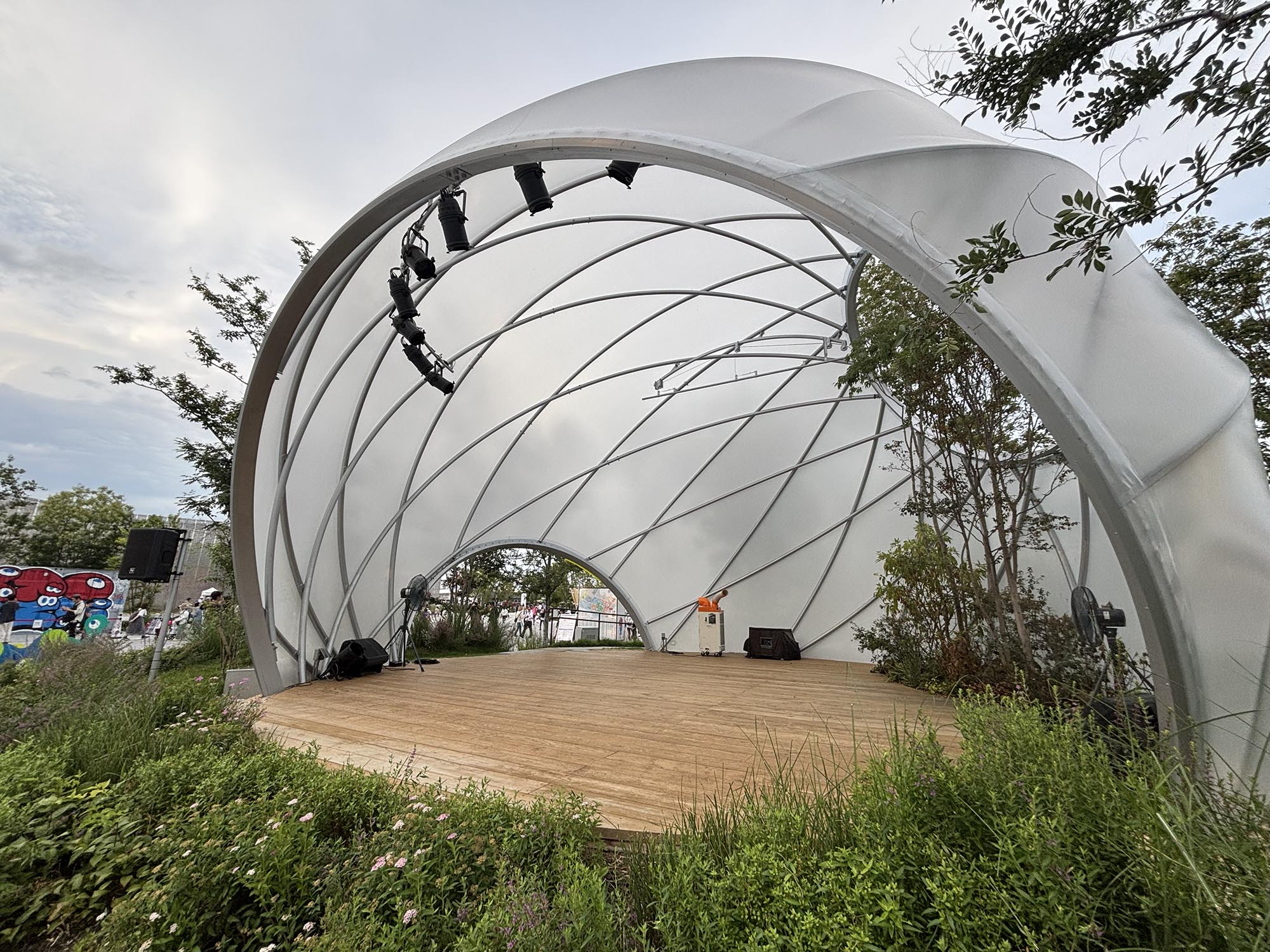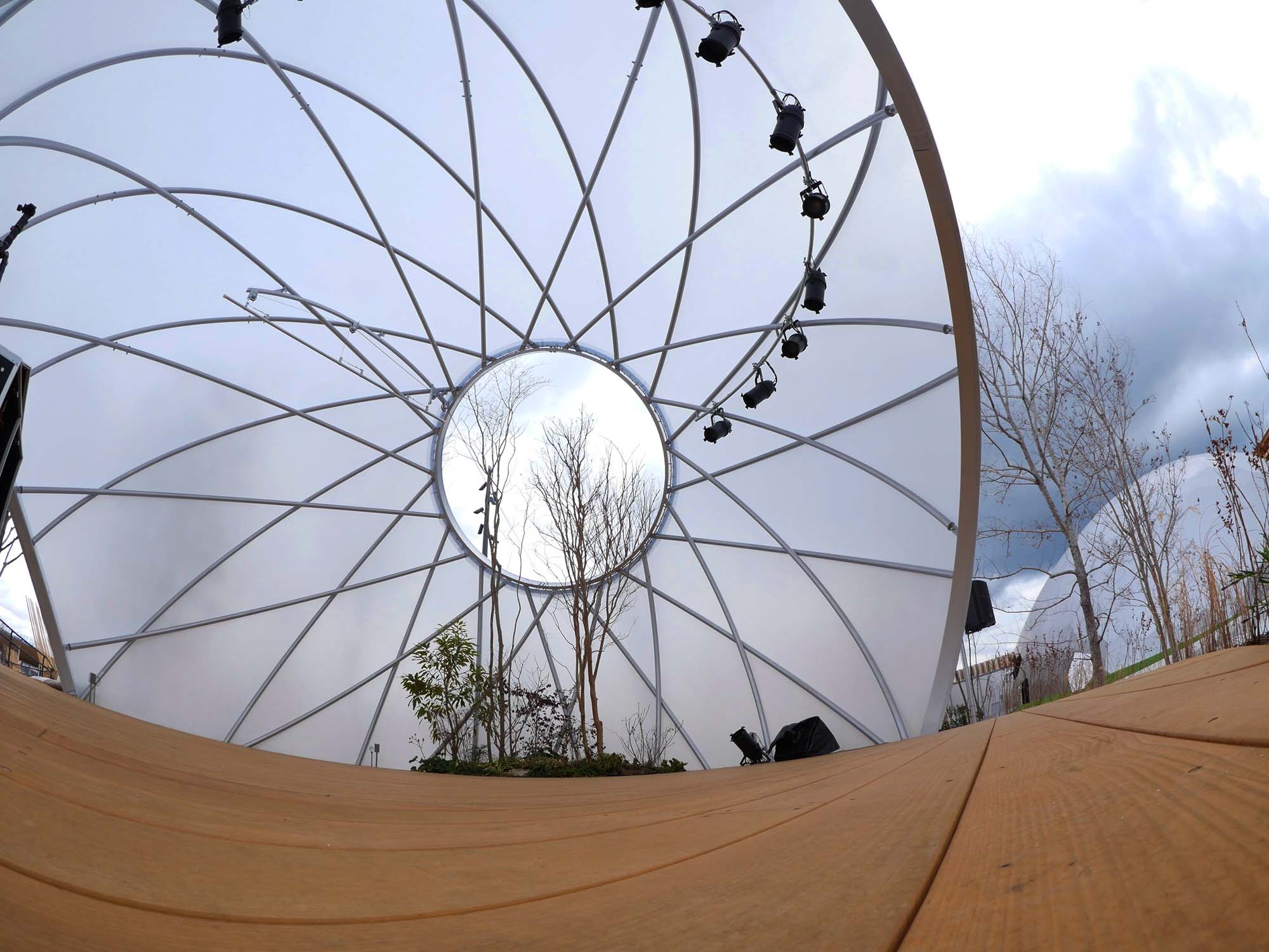 このステージは、シンプルかつ最小限のリングフレームで構成されるドーム建築です。