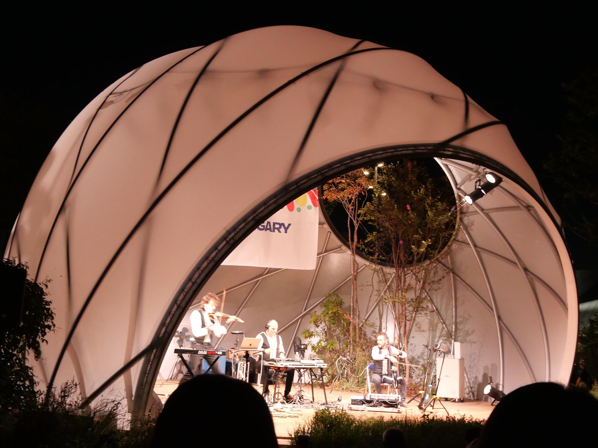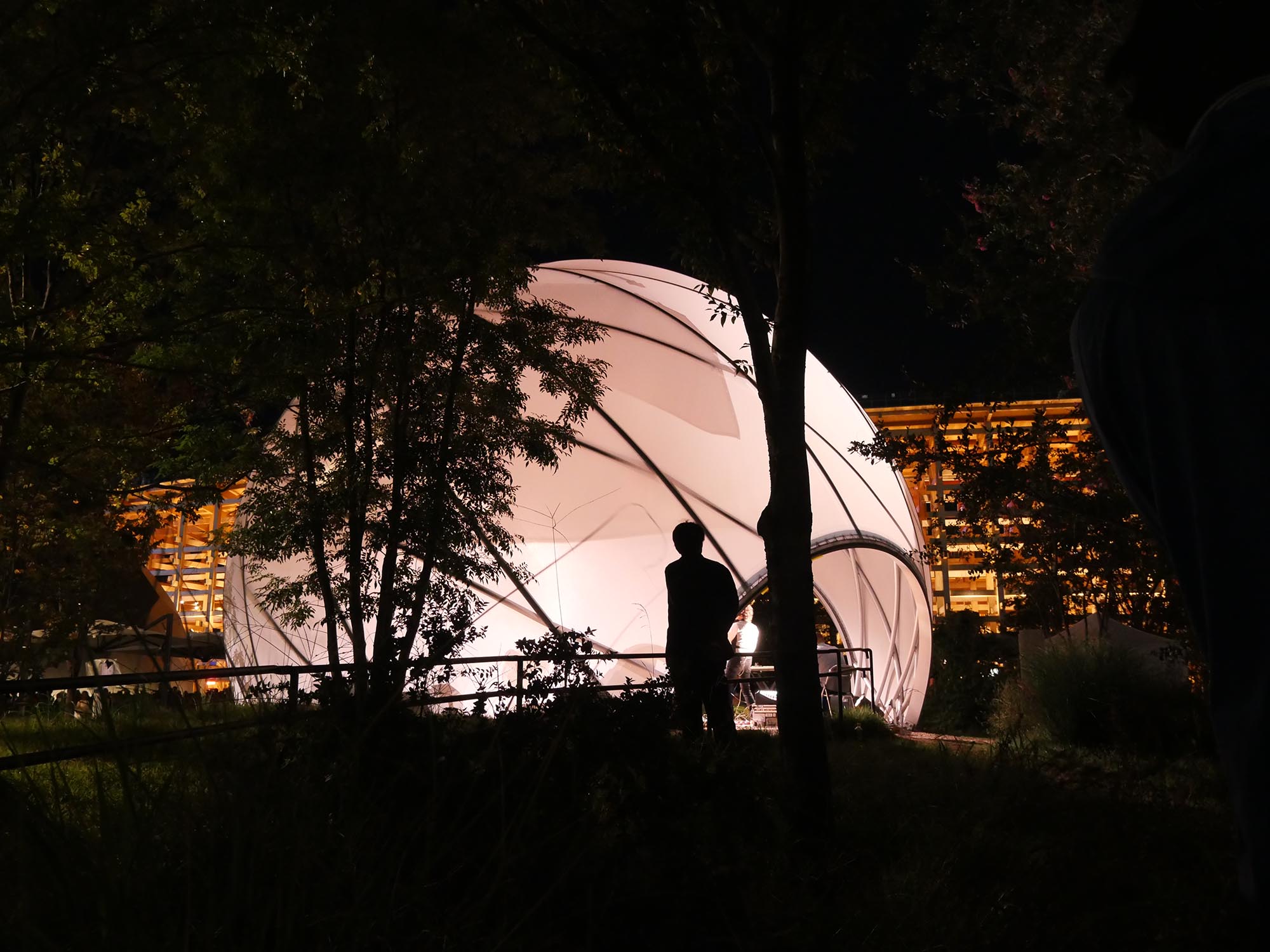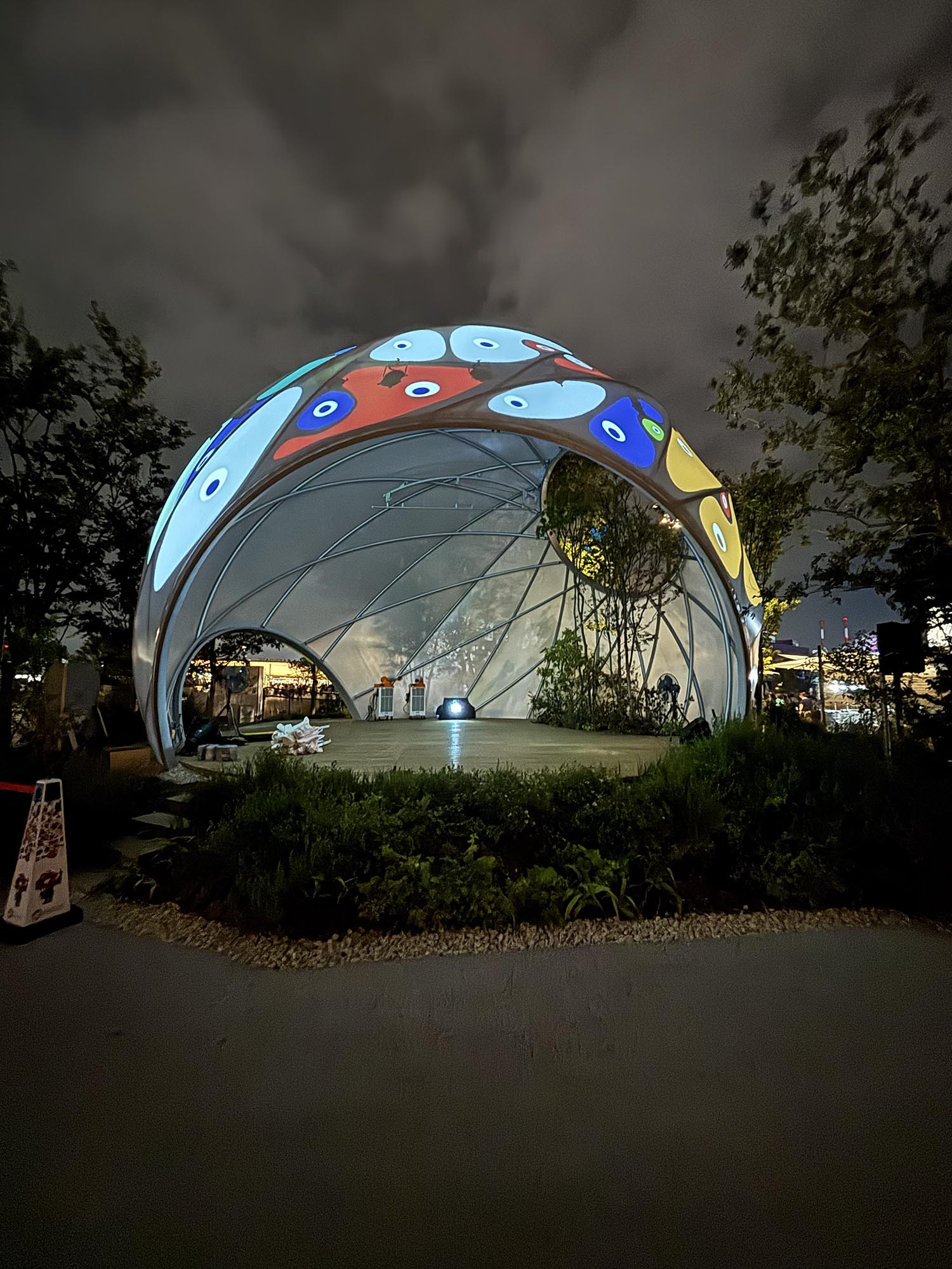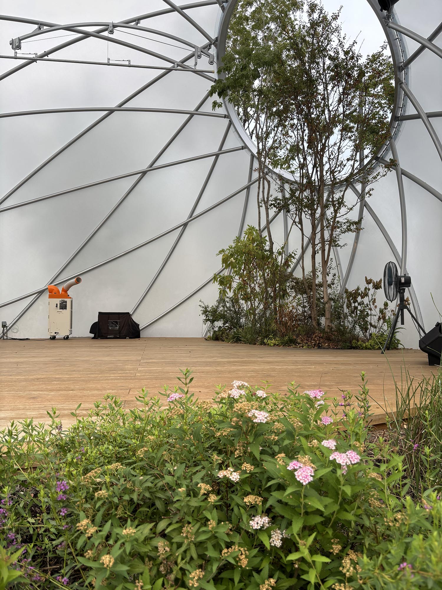 このステージは、シンプルかつ最小限のリングフレームで構成されるドーム建築です。