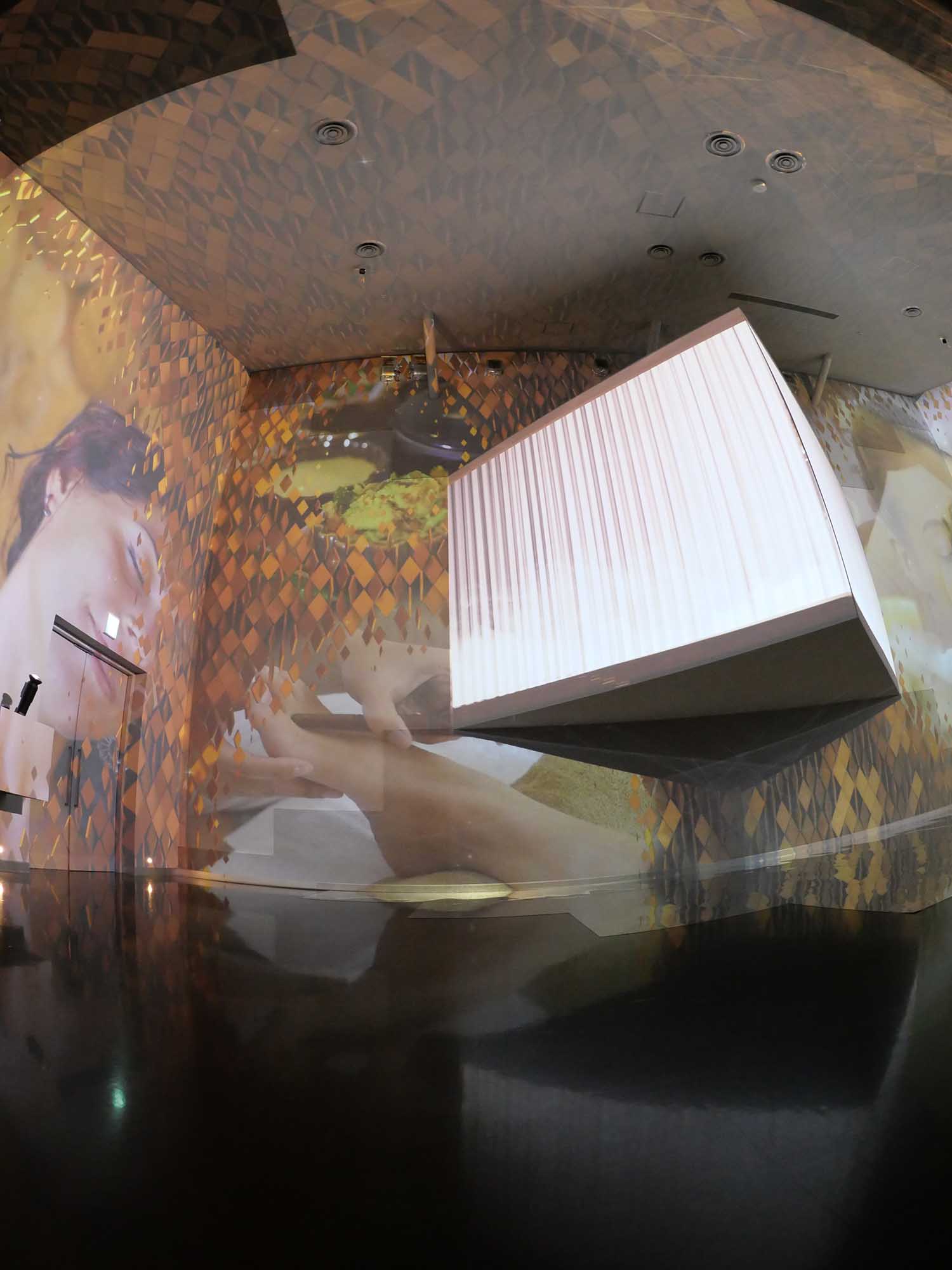 館のシンボルとして配置された象のオブジェは繁栄と長寿を表し、建築素材の「木」は知恵と資源活用の象徴として位置付けられています。実際の構造や仕上げには天然木を全面的に使うのではなく、壁面や天井には節や木目が強調された木質調パネルが貼られ、床も均一なフローリング仕上げとなっており、木の温かみを演出しながらも耐久性や防火性に配慮した化粧材や複合材が中心と考えられます。多くの外装材や床材はタイから調達されたとされていますが、伝統的なチーク材の使用は確認できず、ゴムの木(ラバーウッド)のようにタイで大量に供給される木材や、それを加工した突板や集成材、さらに不燃化処理を施した木目化粧板が用いられている可能性が高いと見られます。内装では天然木の彫刻を思わせる仕上げもありますが、実際は木風の意匠材に置き換えられており、解体後の再利用や建築基準に適合する形で調整されています。