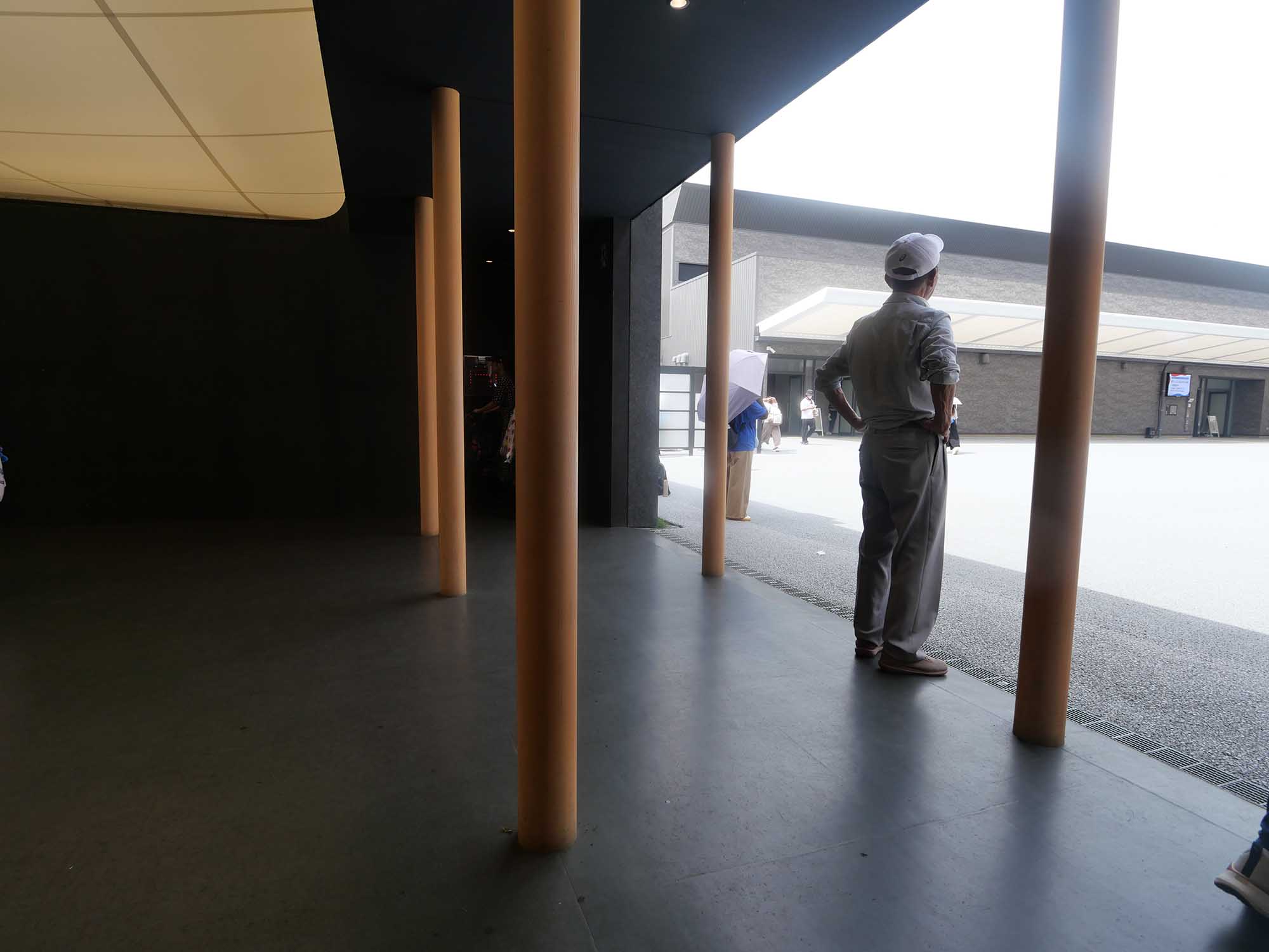 待合スペースや手洗い場からは膜屋根越しに空や光を感じることができ、来場者がひと息つける落ち着いた場所となっています。