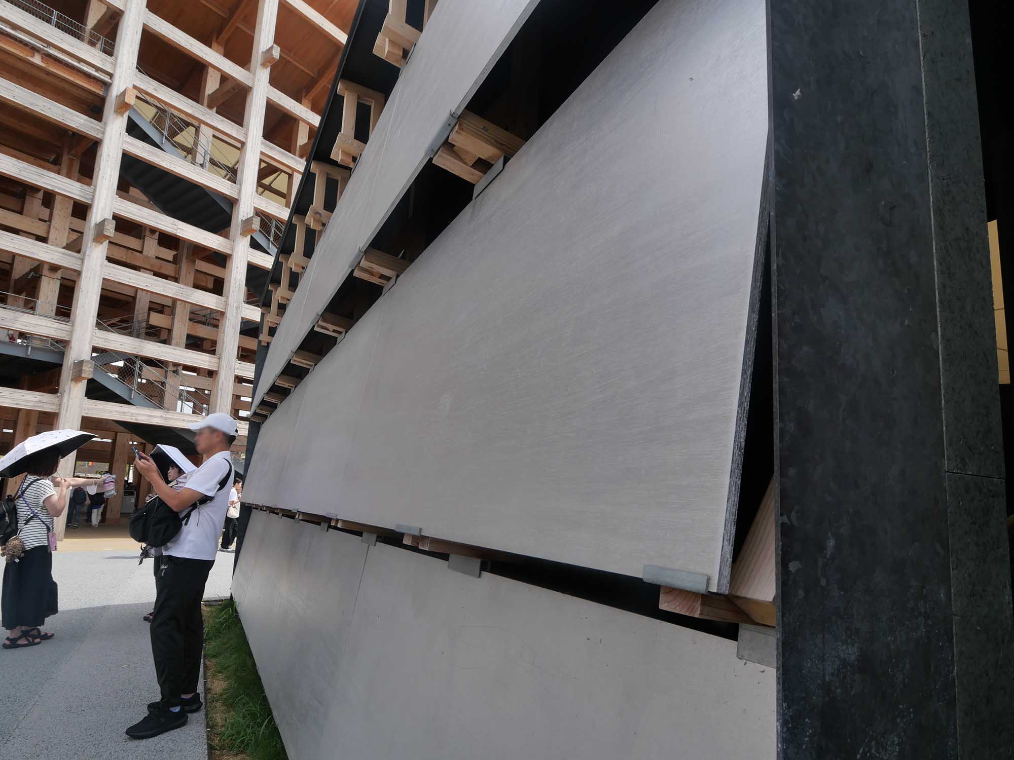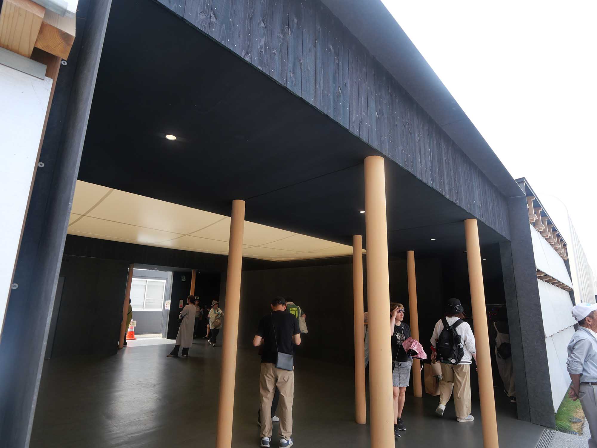 トイレ6は、1970年大阪万博から受け継がれた空気膜構造を現代技術で再解釈し、自然の力を利用して環境に応答する新しい共用施設です。15mm厚の既成合板に塗装を施した外装によって、木造基壇との調和と実用性を両立しながら、来場者にやすらぎの空間を提供しています。