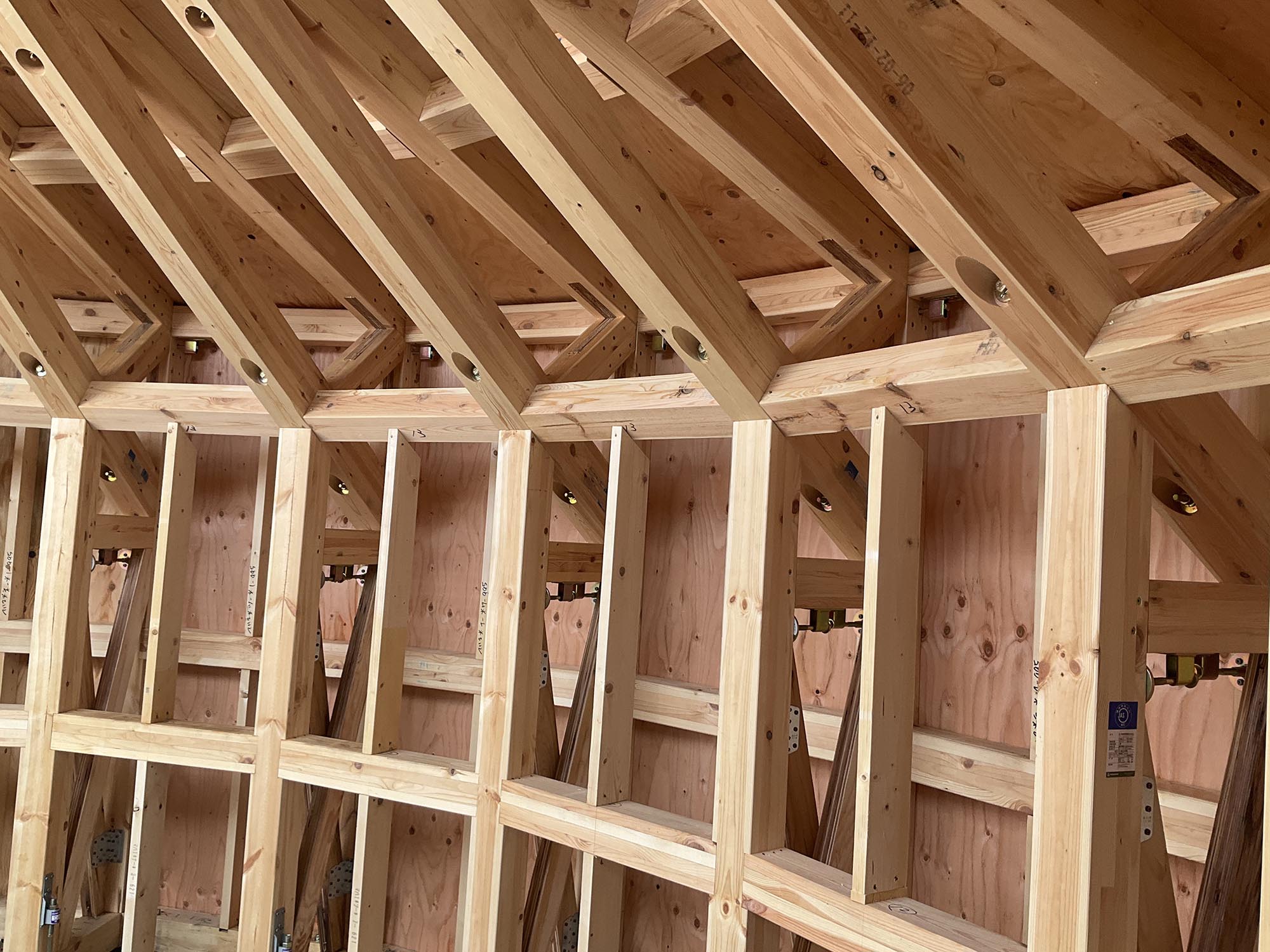 木材は目立つ場所には多く使われていません。しかし、重量や風圧を受け止め、施工や解体のしやすさ、自然素材同士の相性の良さなど、建物の基盤となる重要な役割を果たしています。