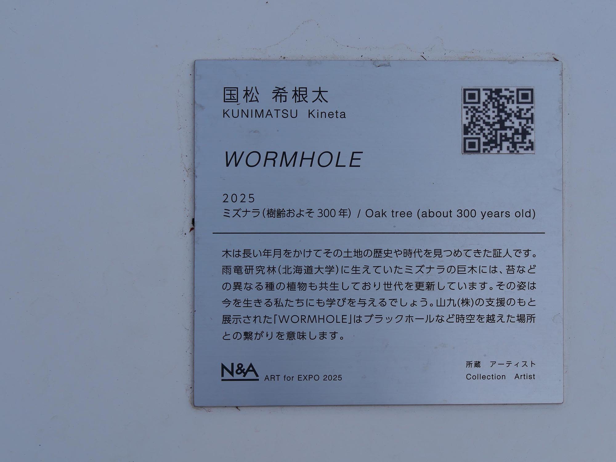 木と真摯に向き合い続けてきた作家の想いと、300年の時を超えて今なお語りかけてくるミズナラの存在。その両者が融合した《WORMHOLE》は、訪れる人に深い気づきと感動を与えてくれることでしょう。夢洲を訪れた際には、ぜひこの作品の前に立ち、自然と時間、そして人間の創造力が交錯する瞬間を体感してみてください。